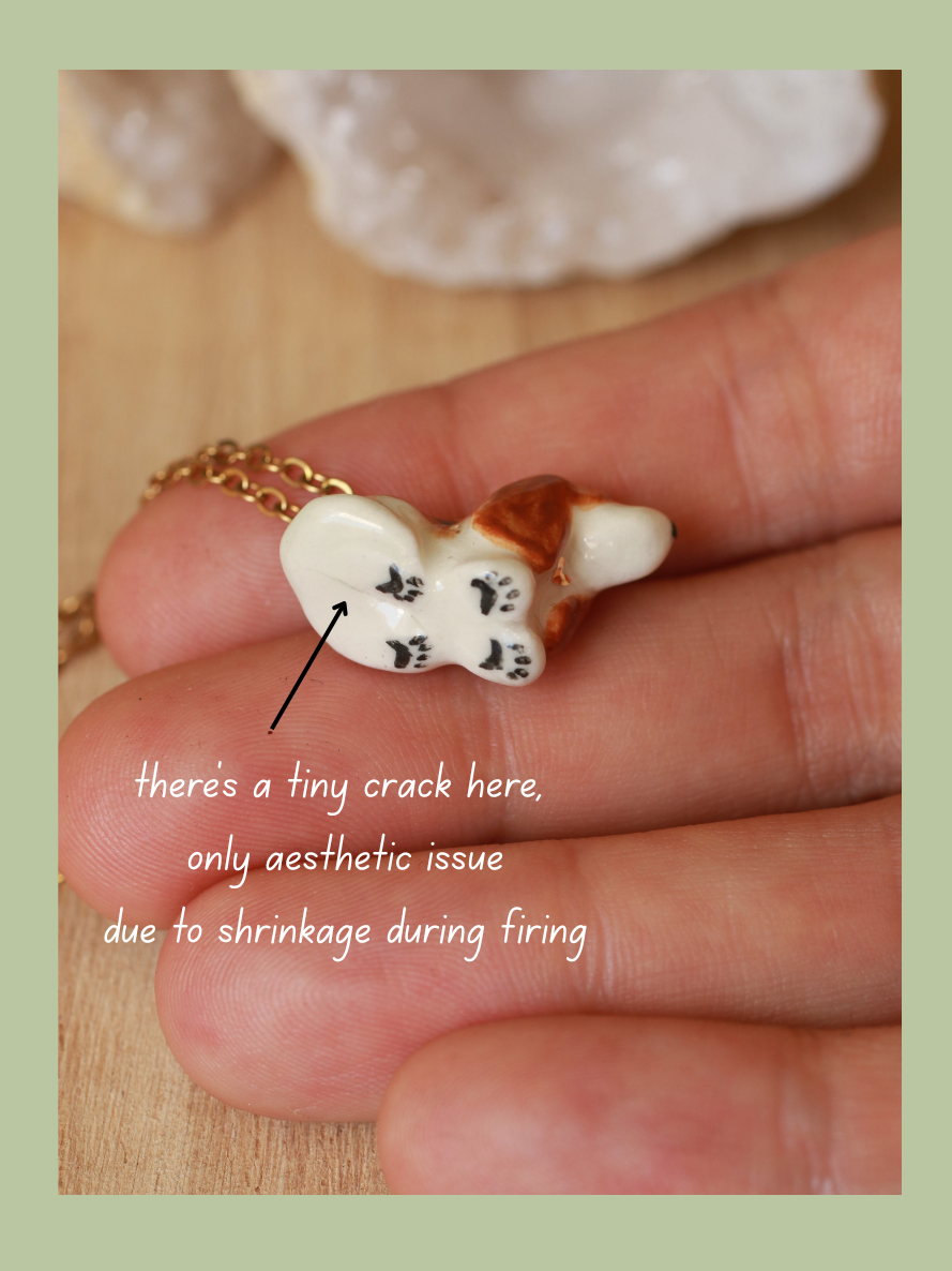 There is a tiny visible crack on the bottom of the pendant, it is not broken just an aesthetic issue due to shrinkage during firing.