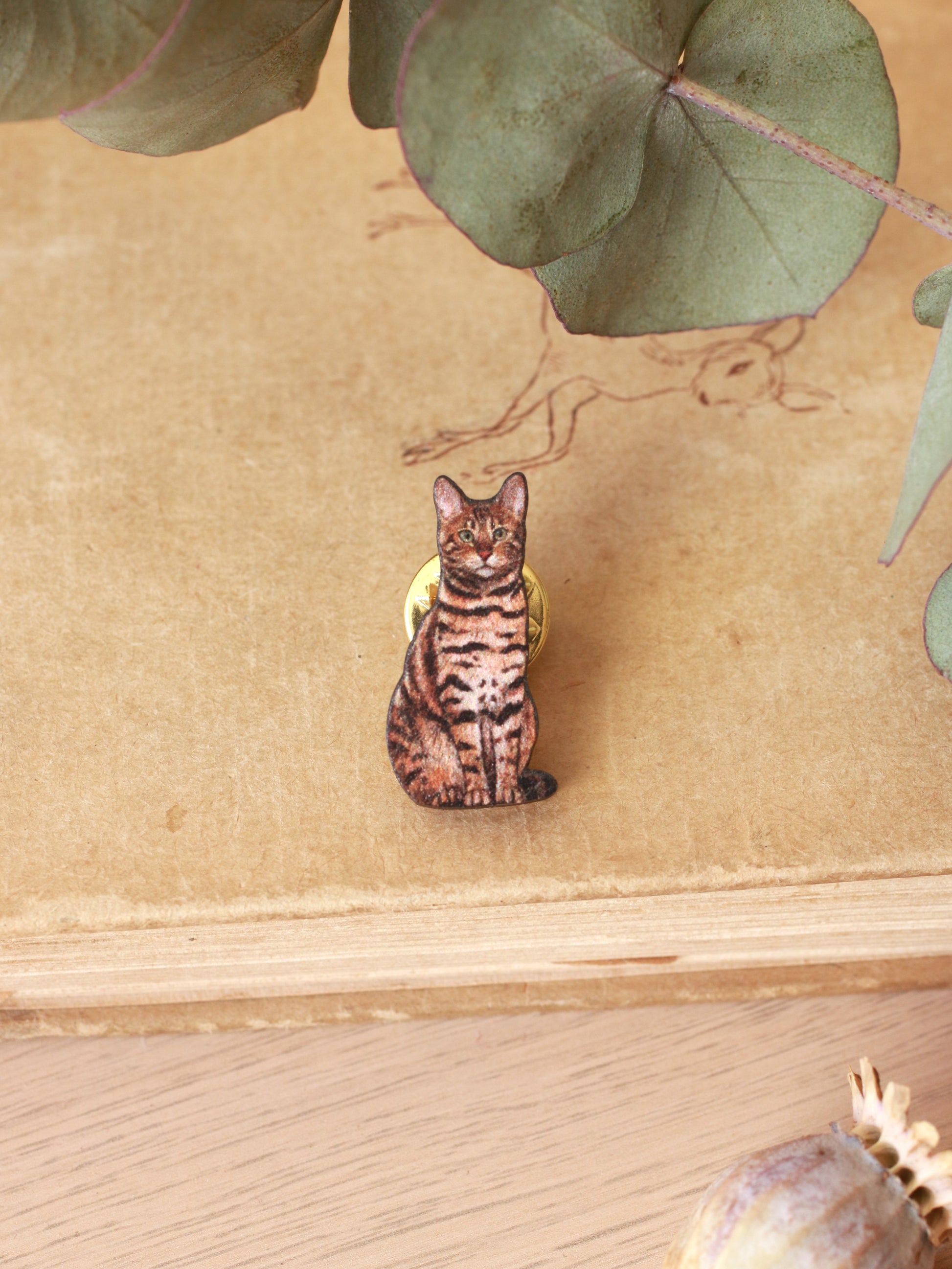 Bengal cat wooden pin