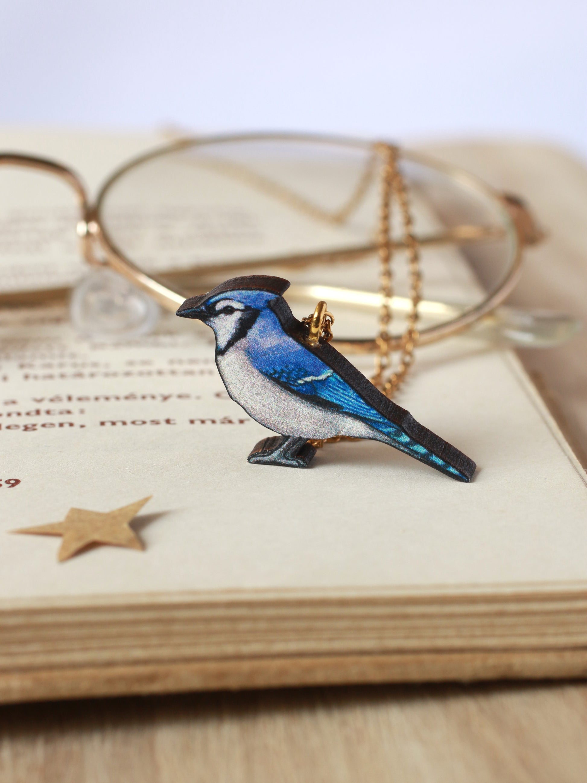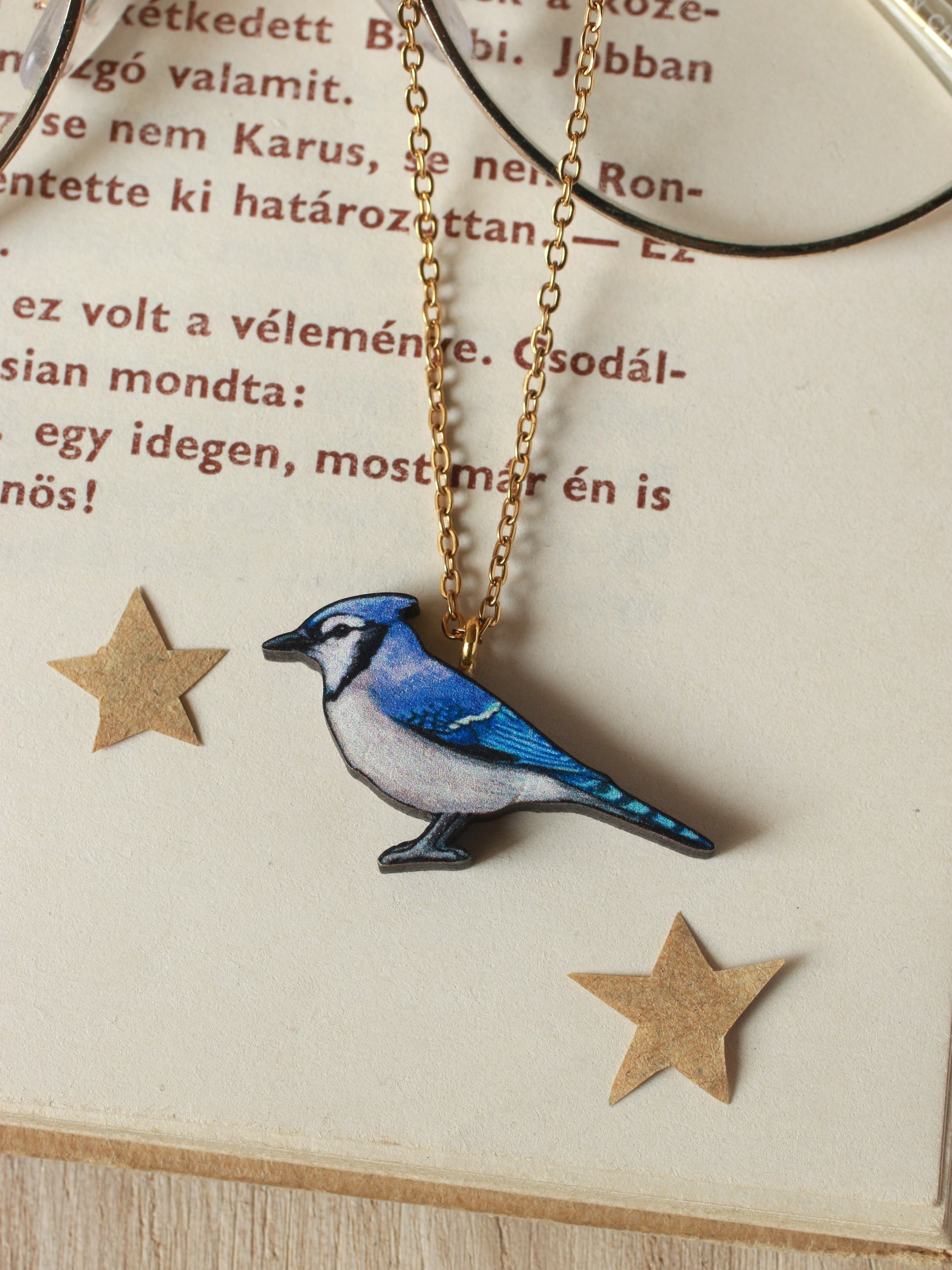 Wooden Blue jay necklace - ↟ Birds forest ↟ collection