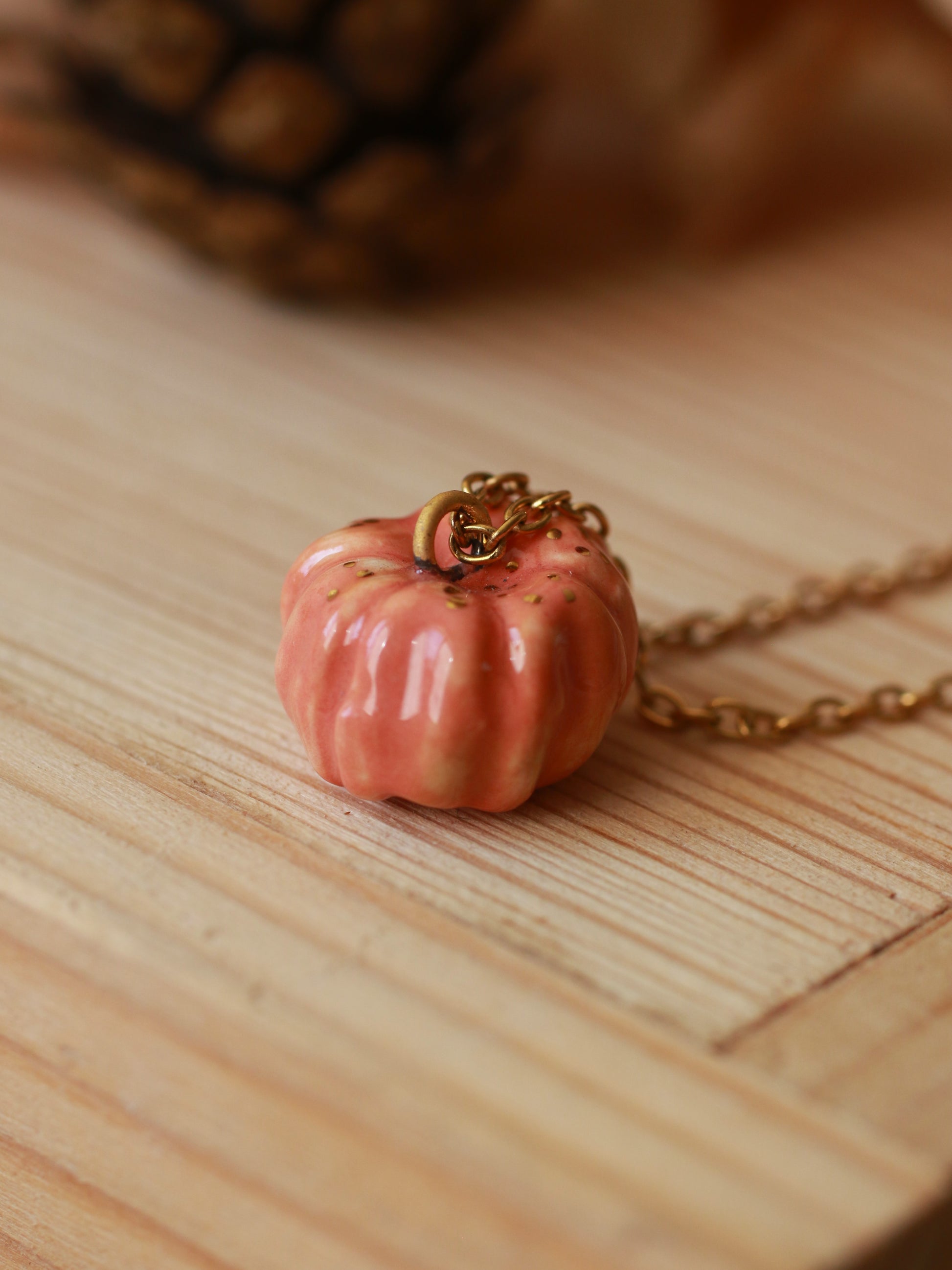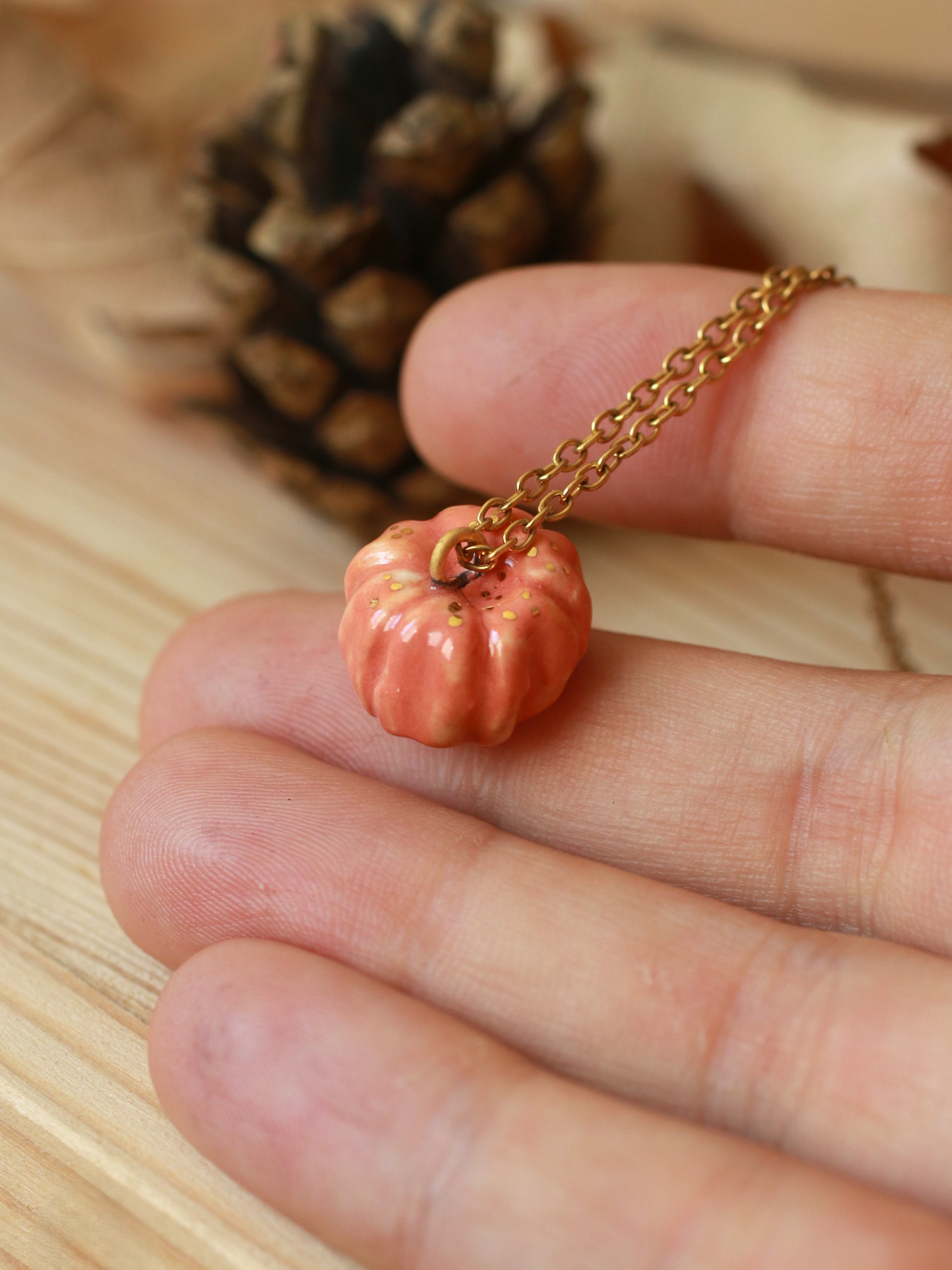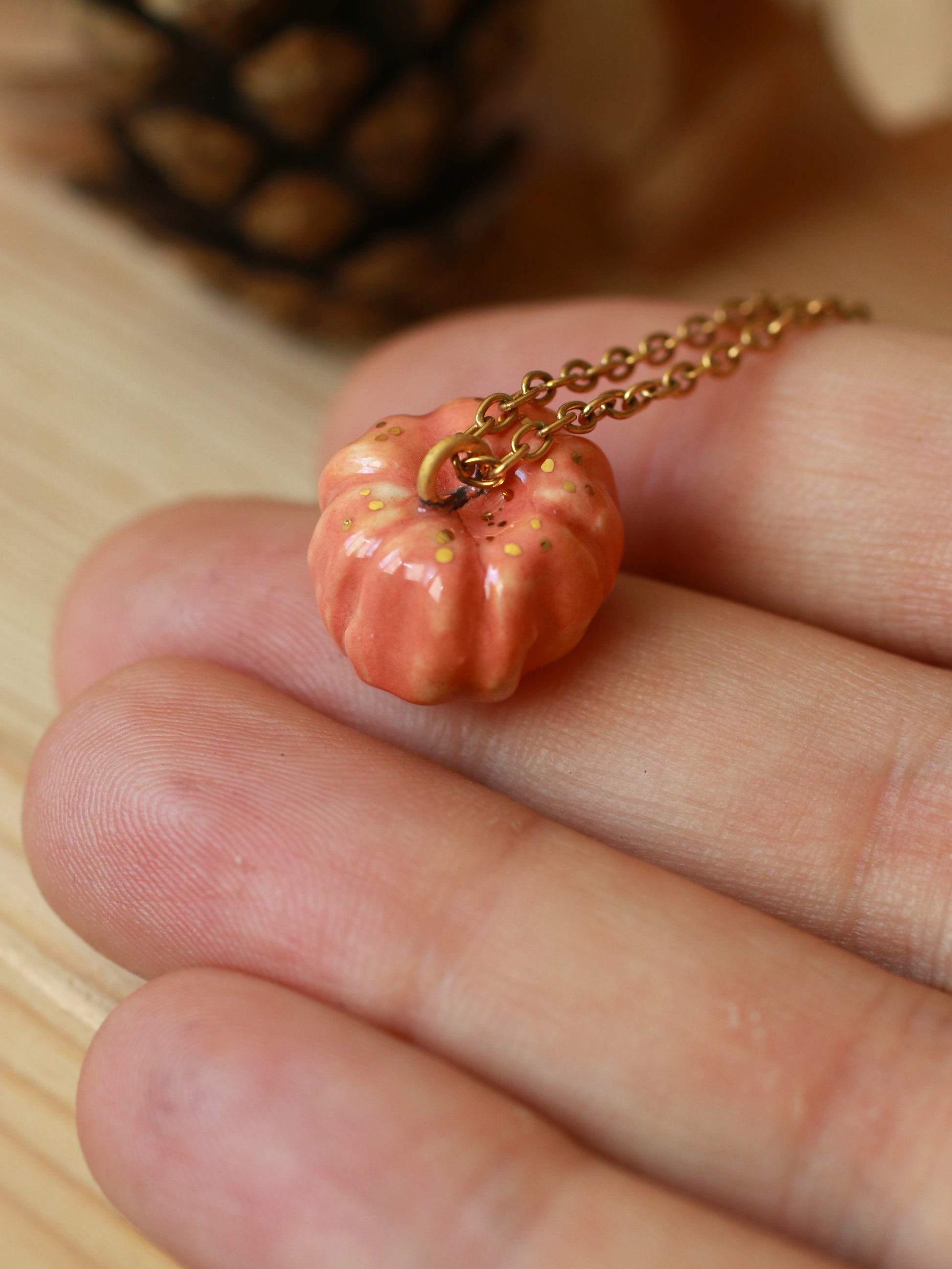 Surprise yourself or someone you love with this one of a kind pumpkin pendant.