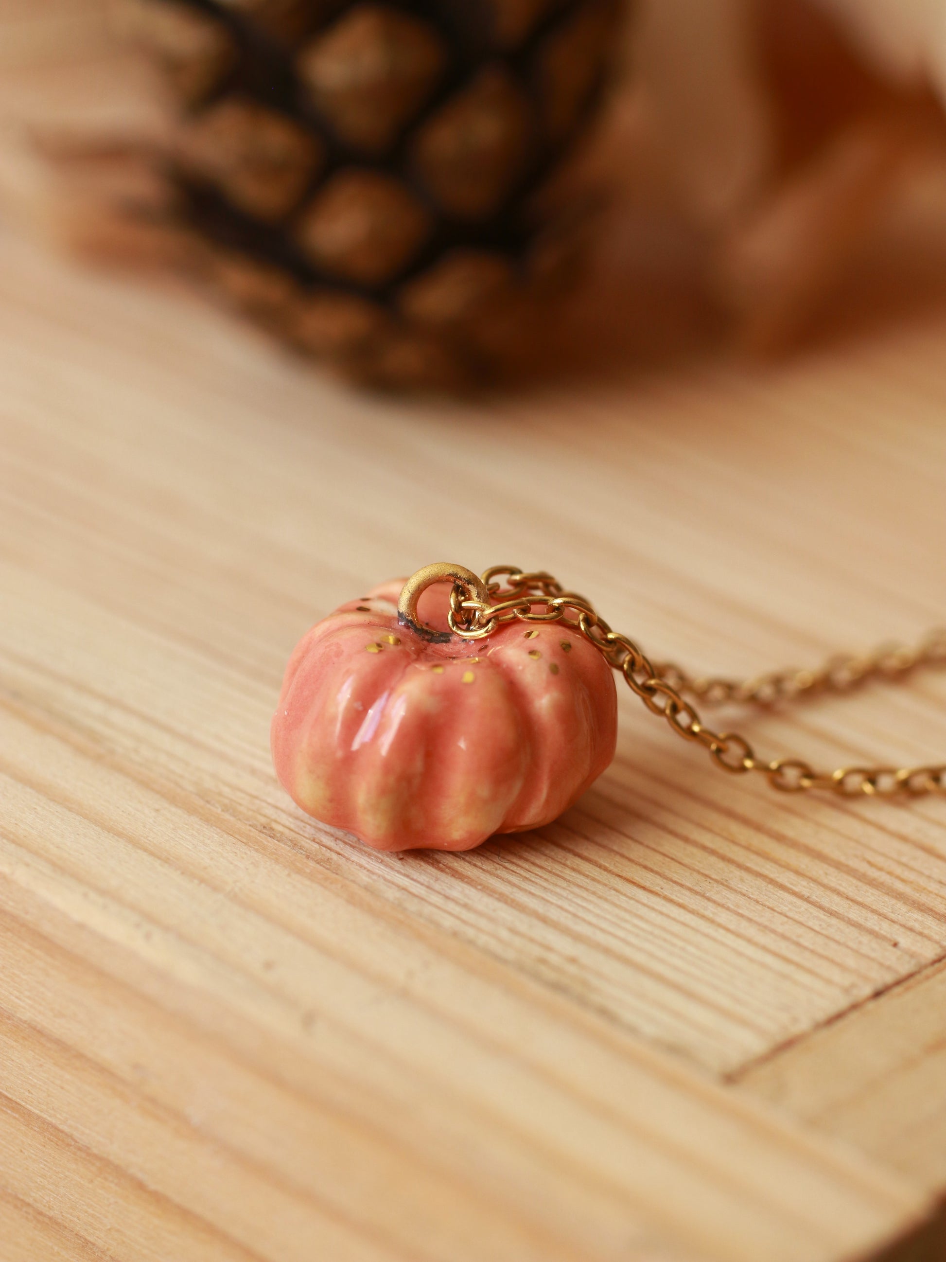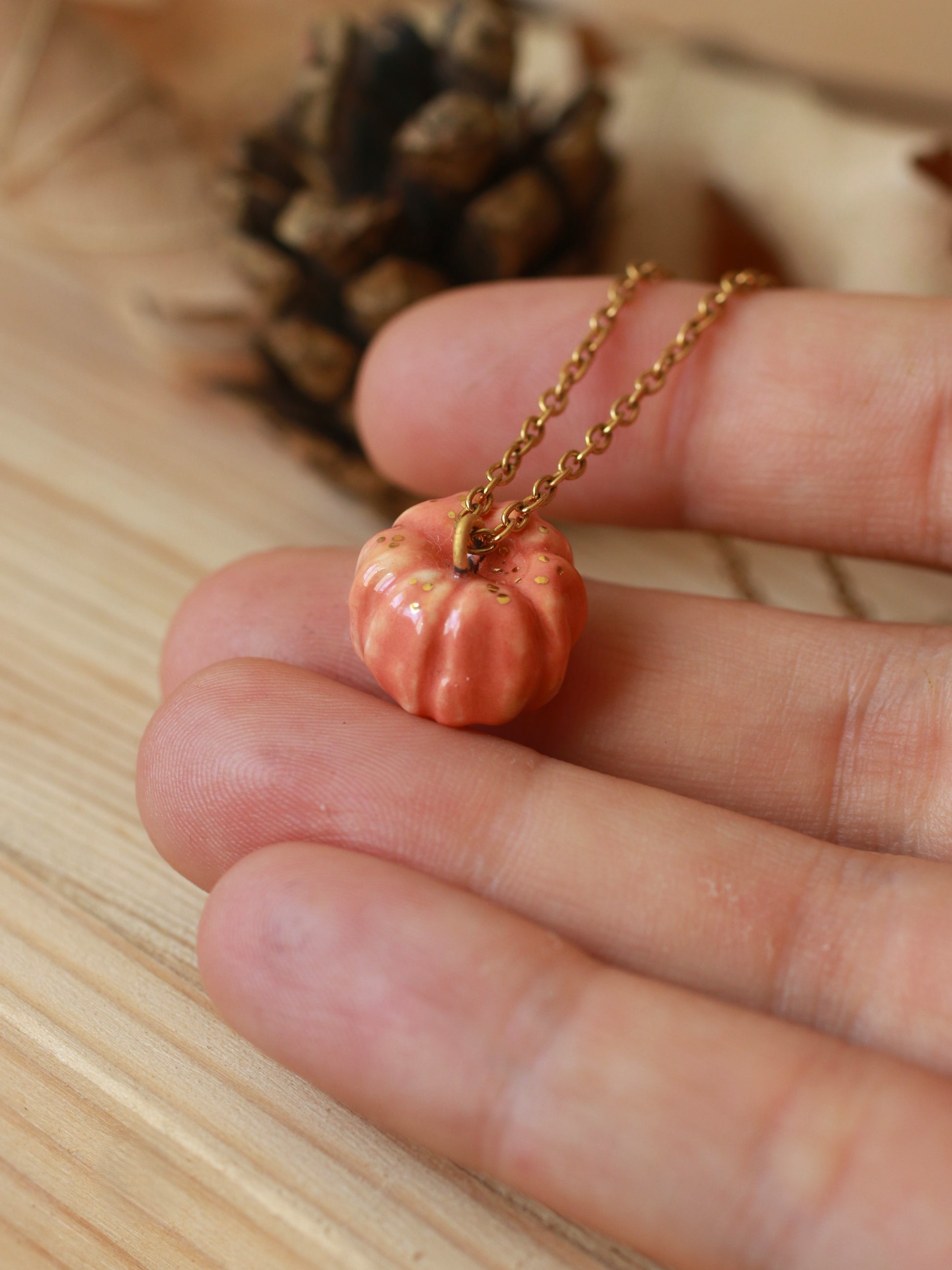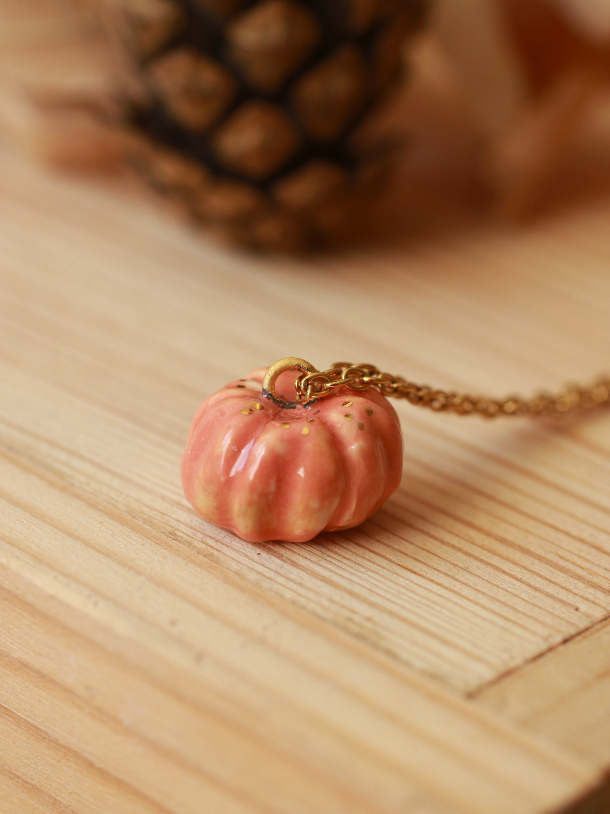 Surprise yourself or someone you love with this one of a kind pumpkin pendant.