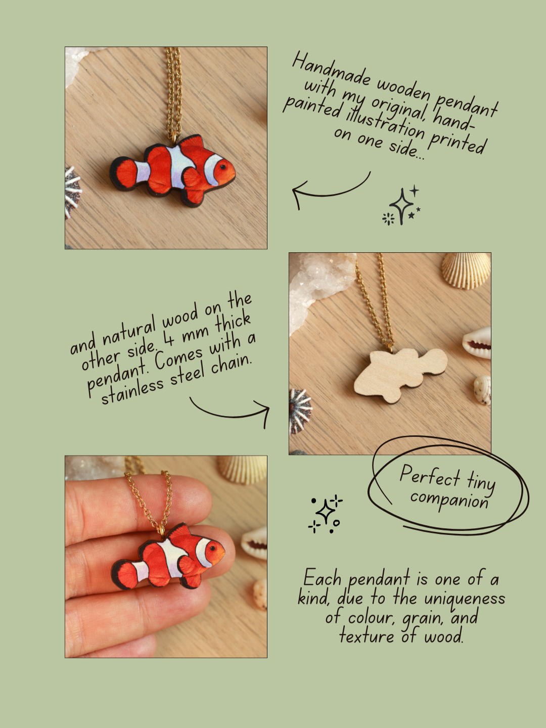 Wooden Clownfish necklace