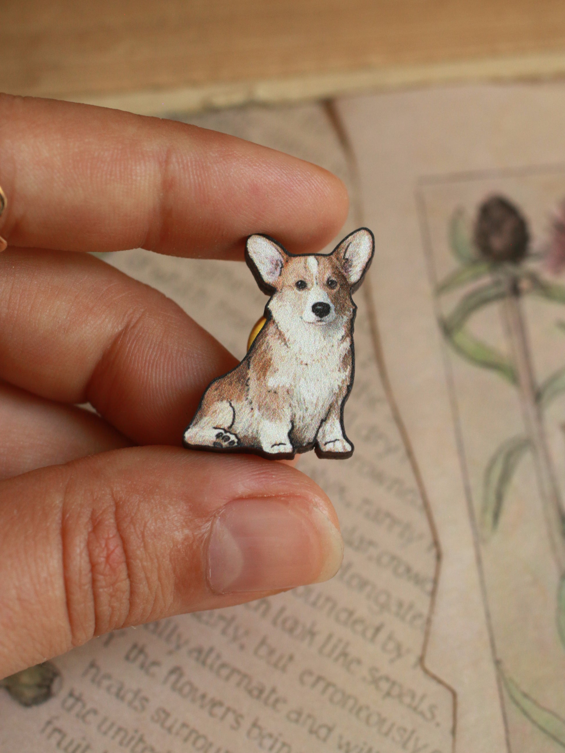 Corgi pin - wooden dog brooch