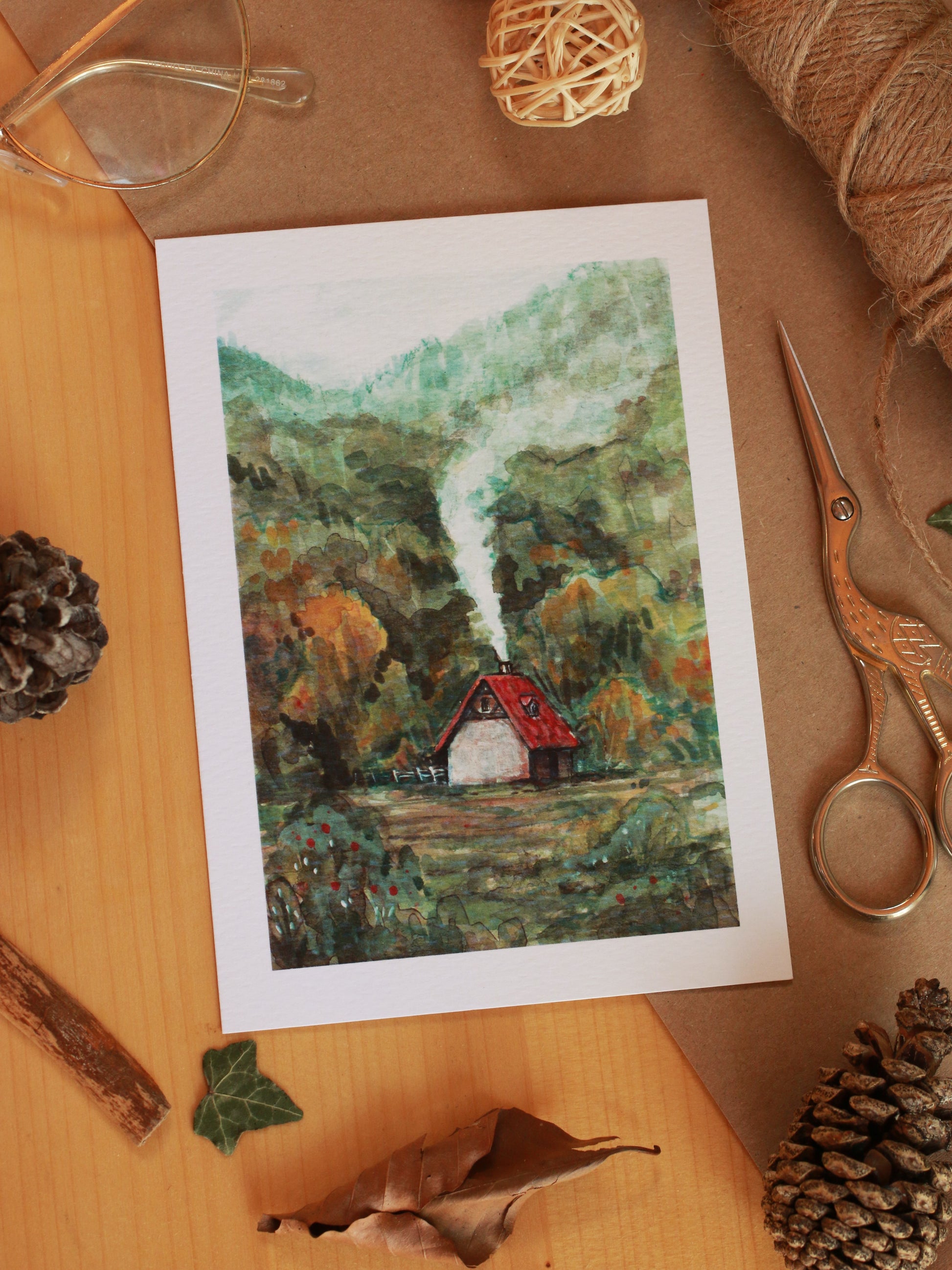 Cottage in the mountains - A6 art print - postcard