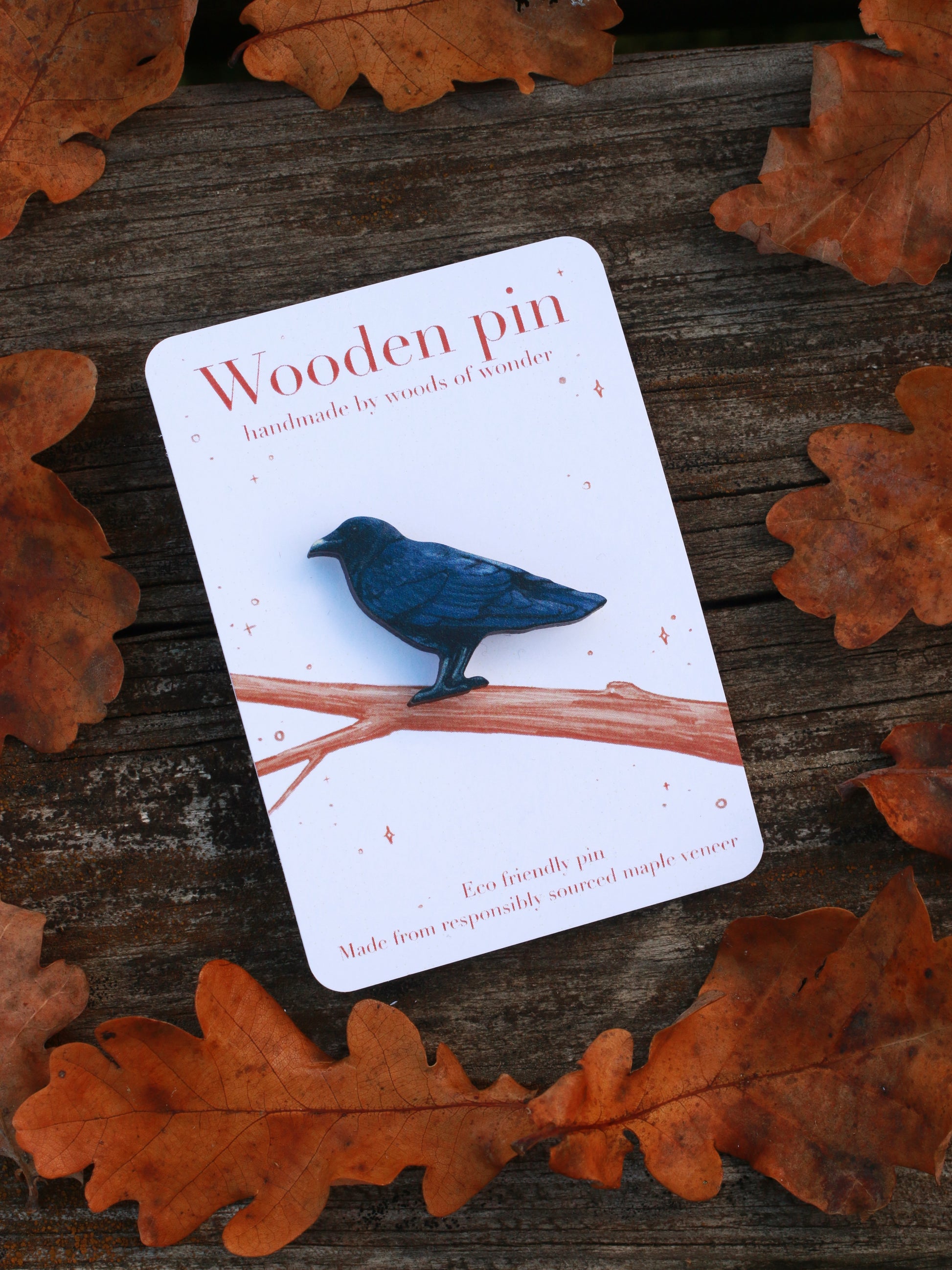 Wooden Crow pin - from the ↟ Birds forest ↟ pin collection