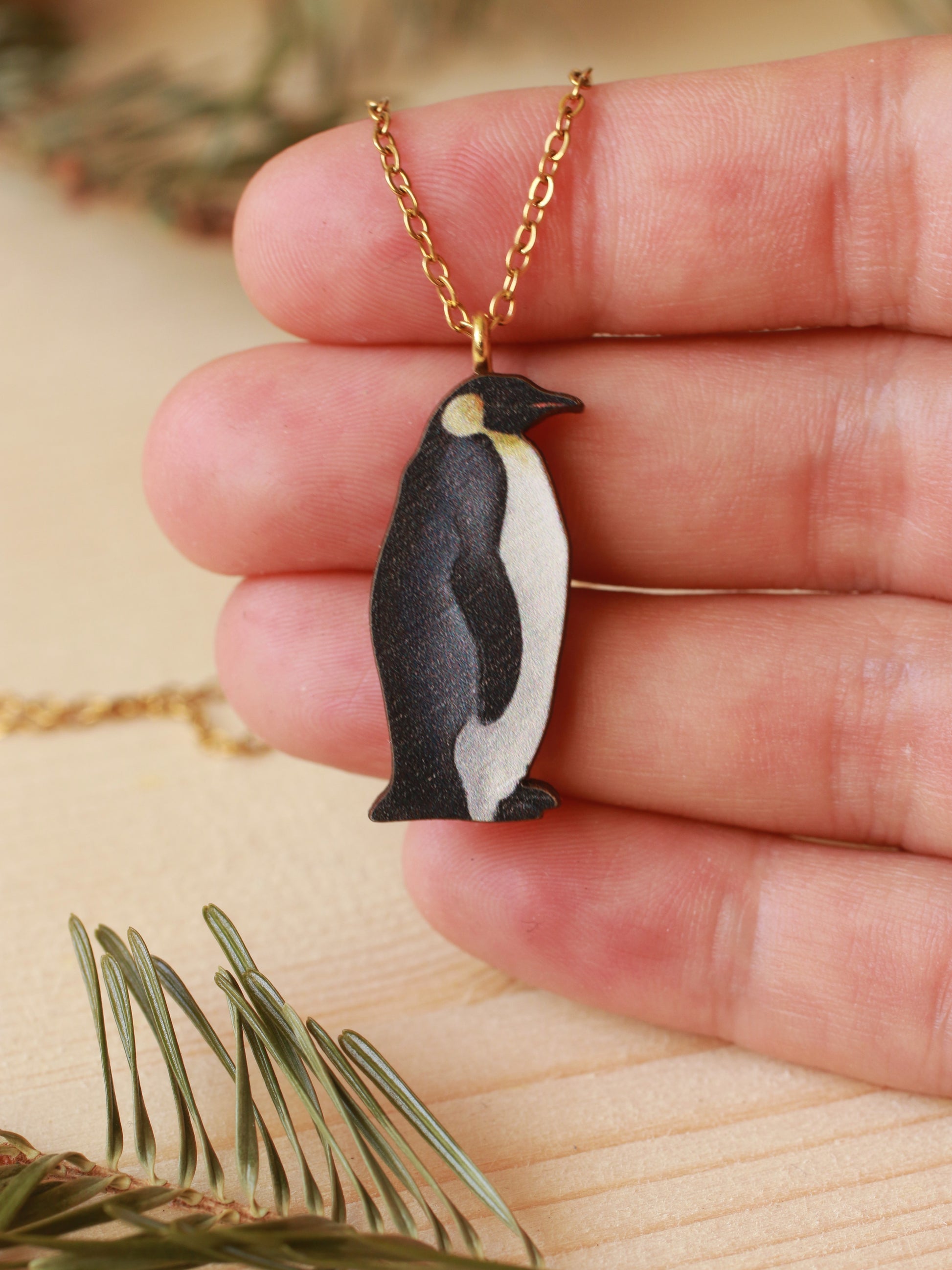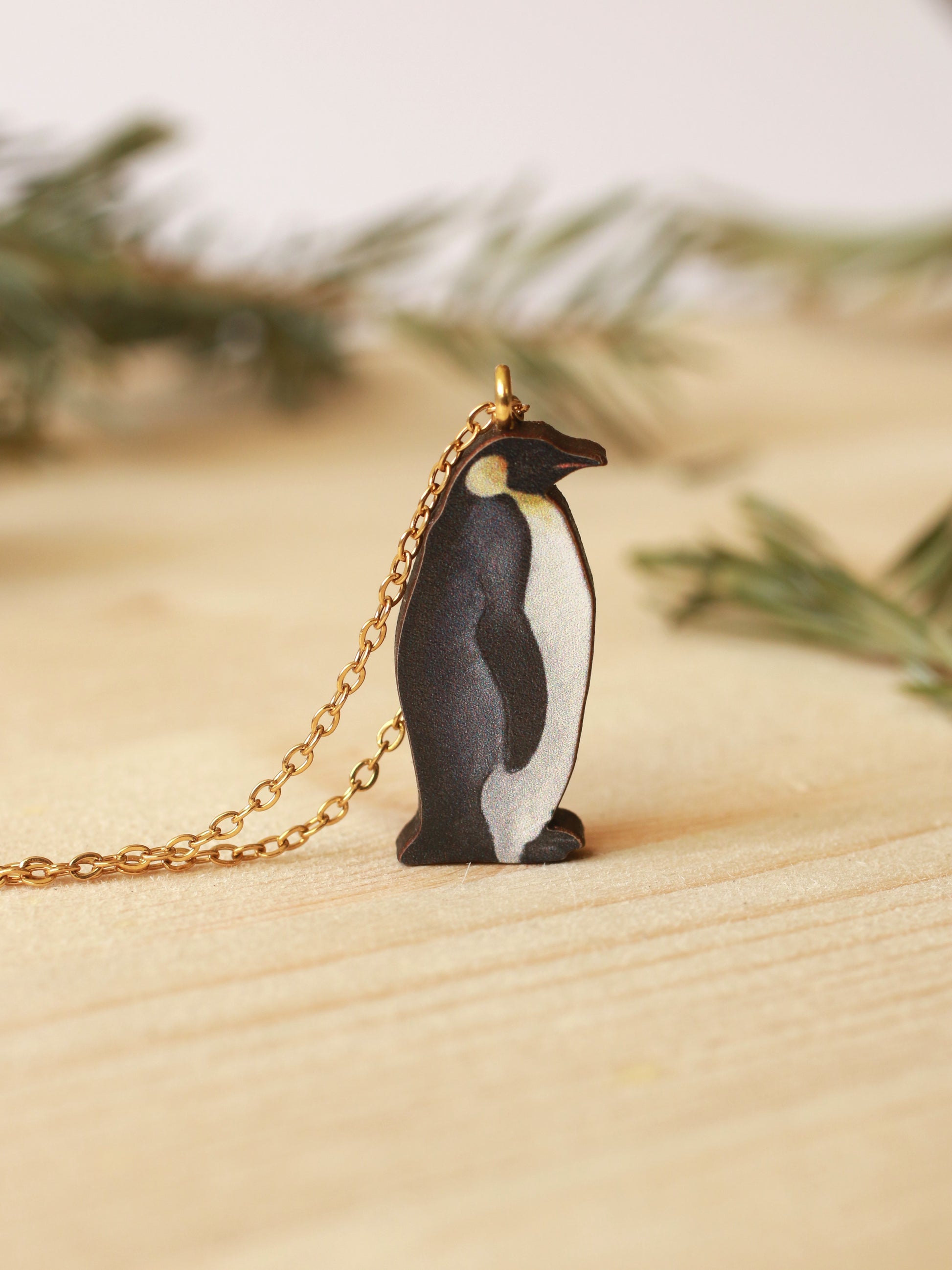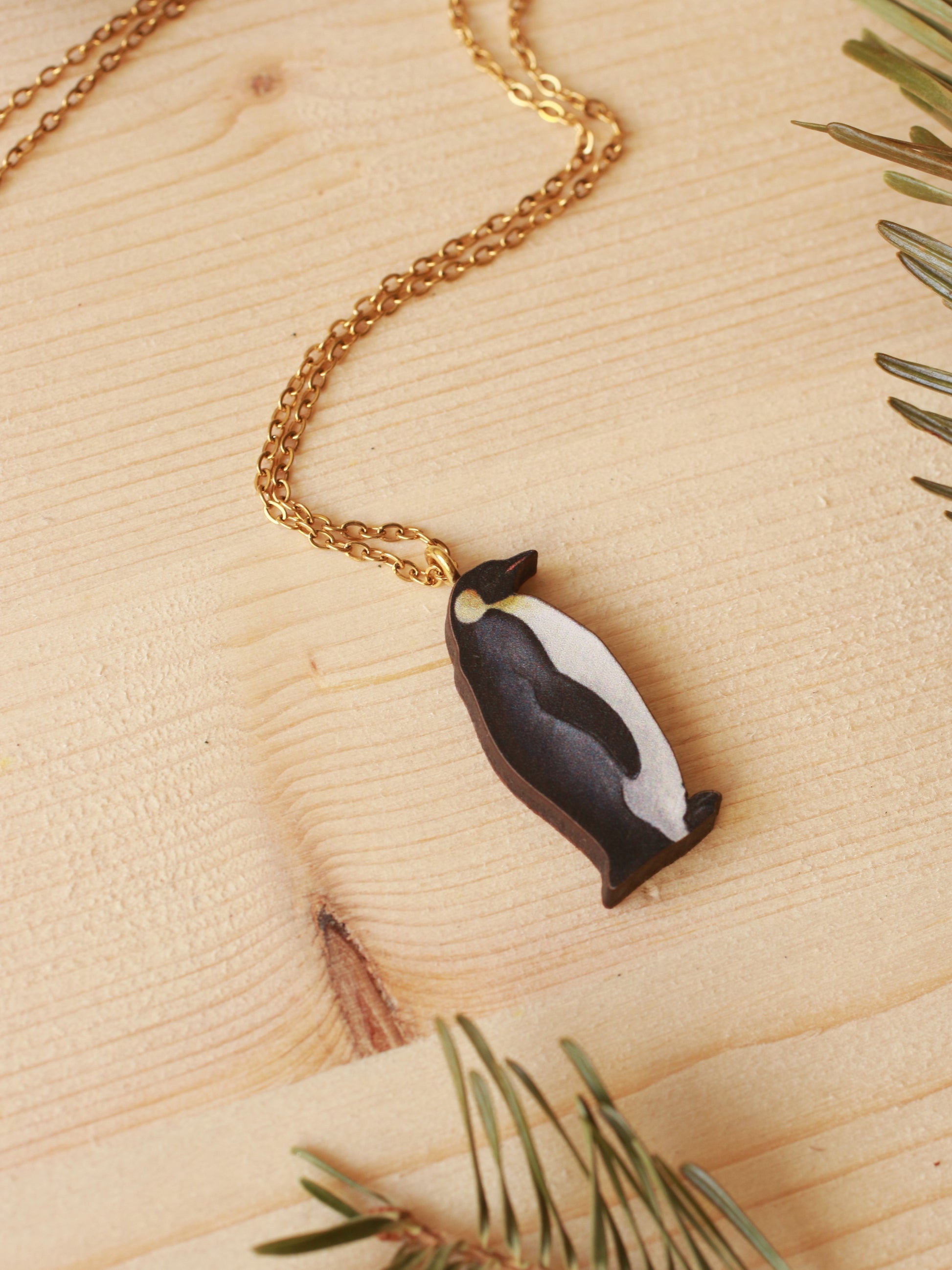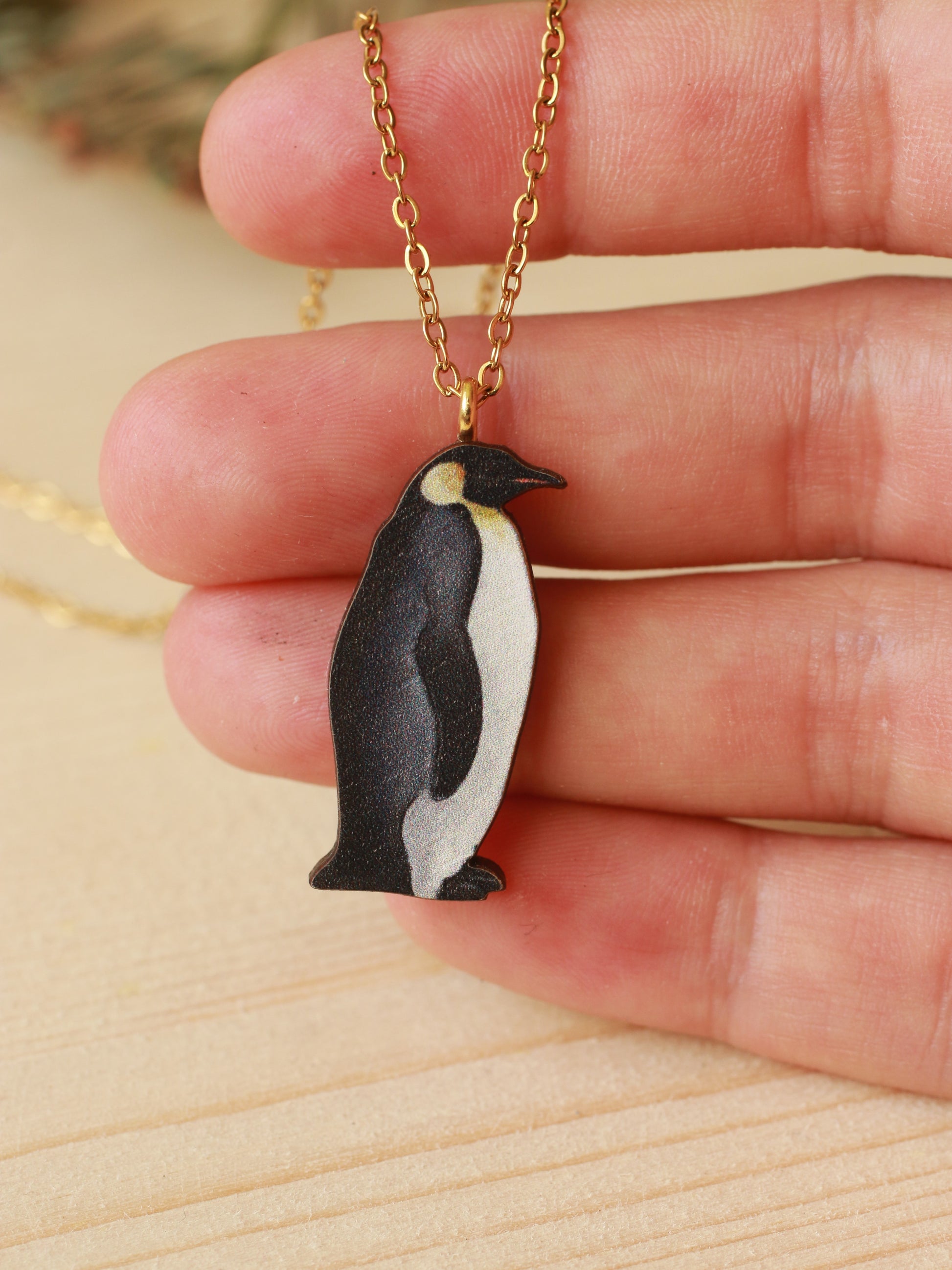 Wooden Emperor penguin necklace