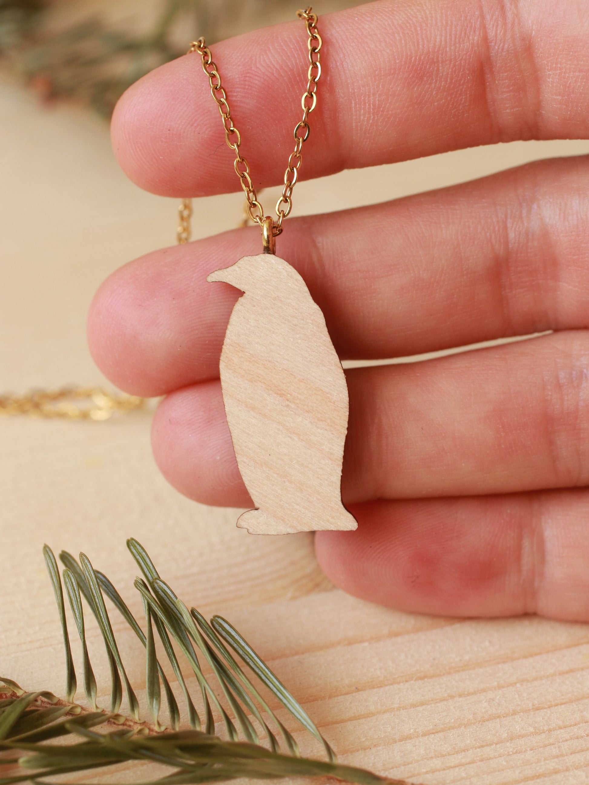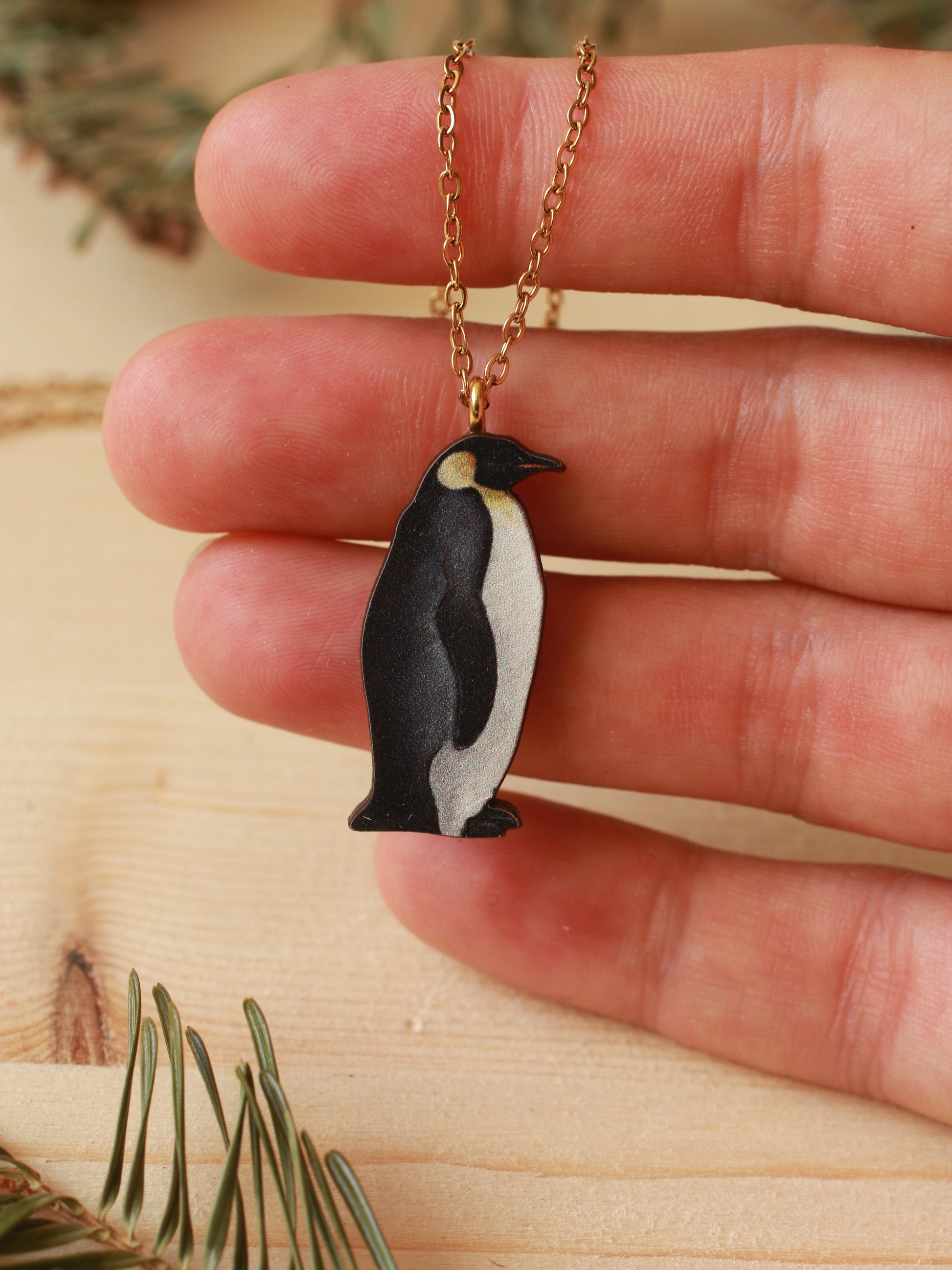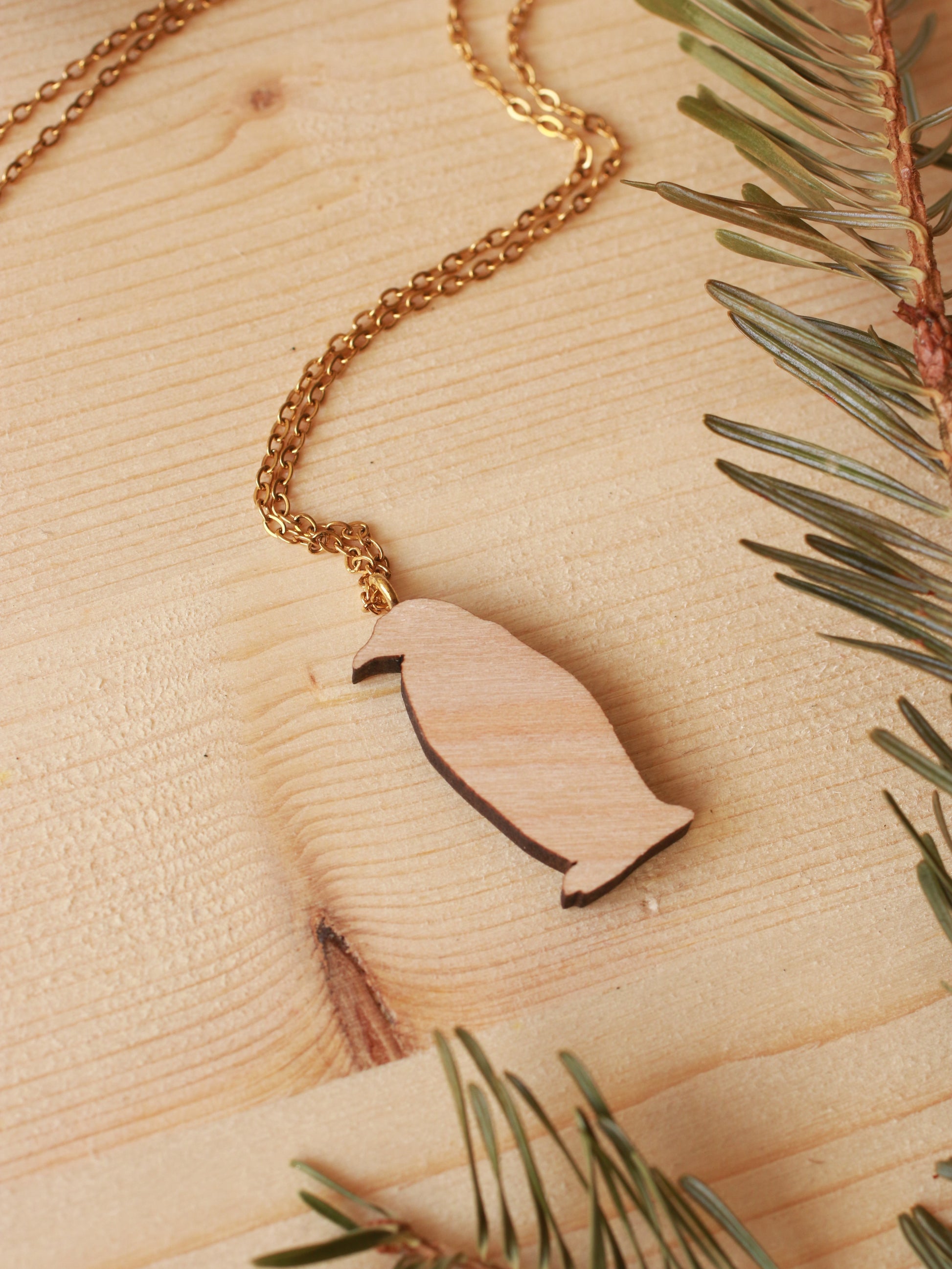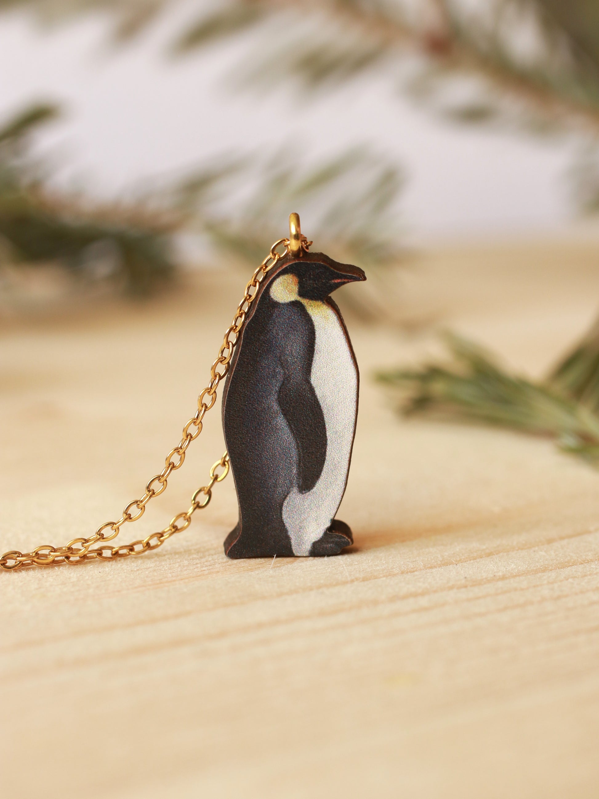 Wooden Emperor penguin necklace