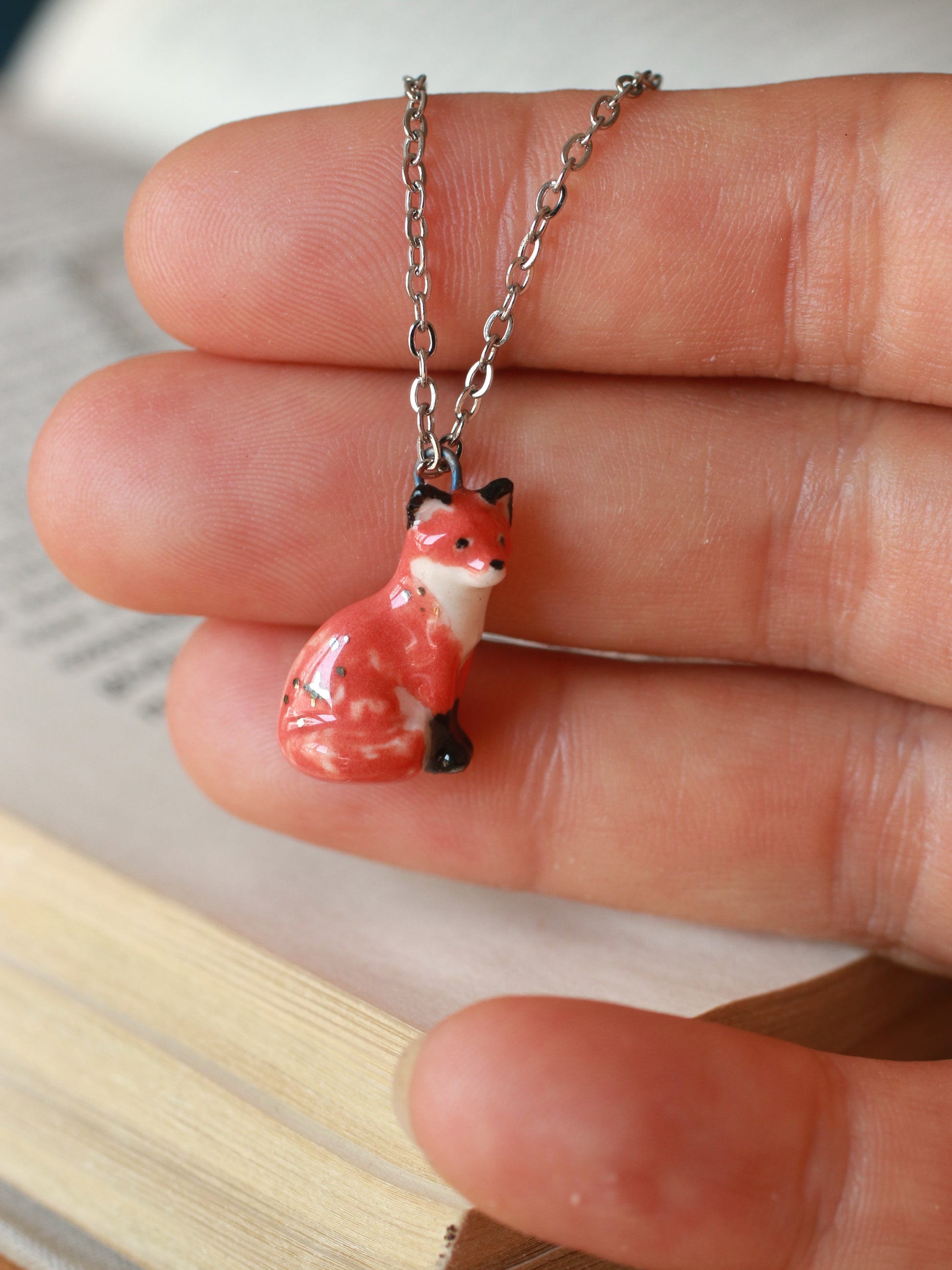 Surprise yourself or someone you love with this one of a kind ceramic fox necklace.