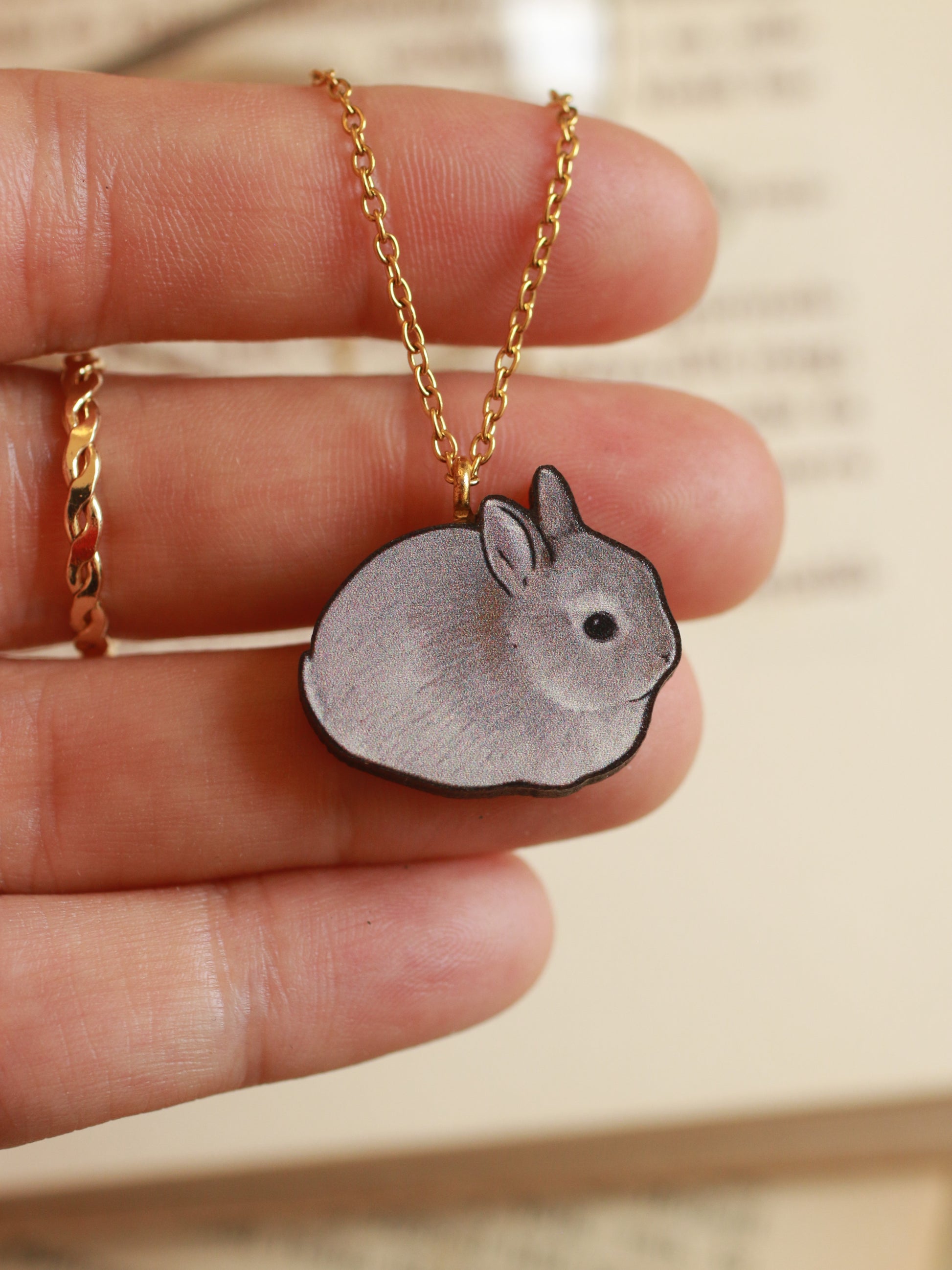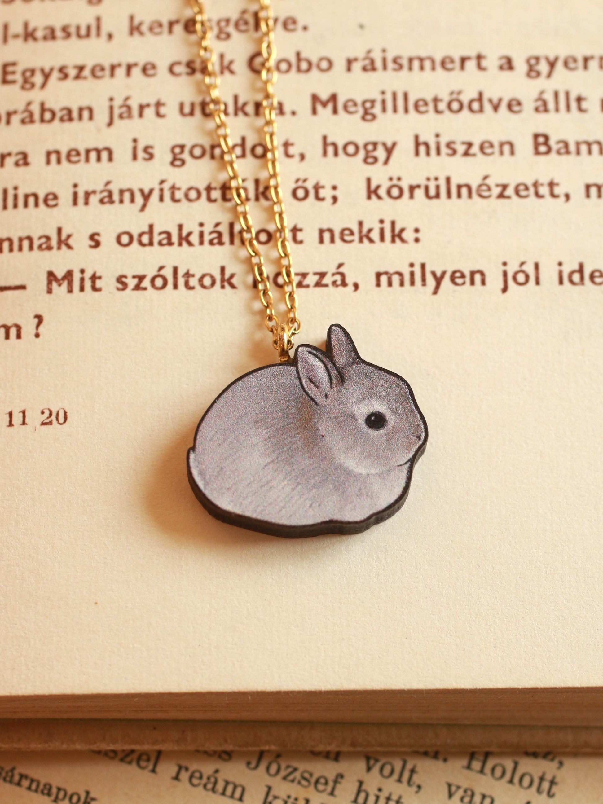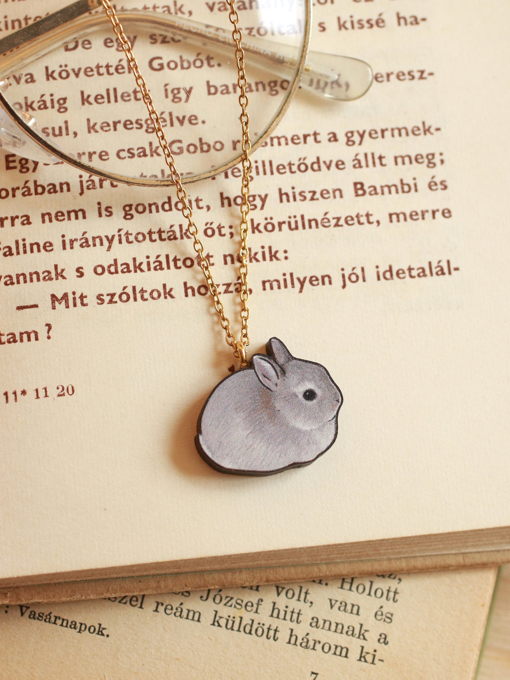 Gray Rabbit necklace - gray bunny pendant