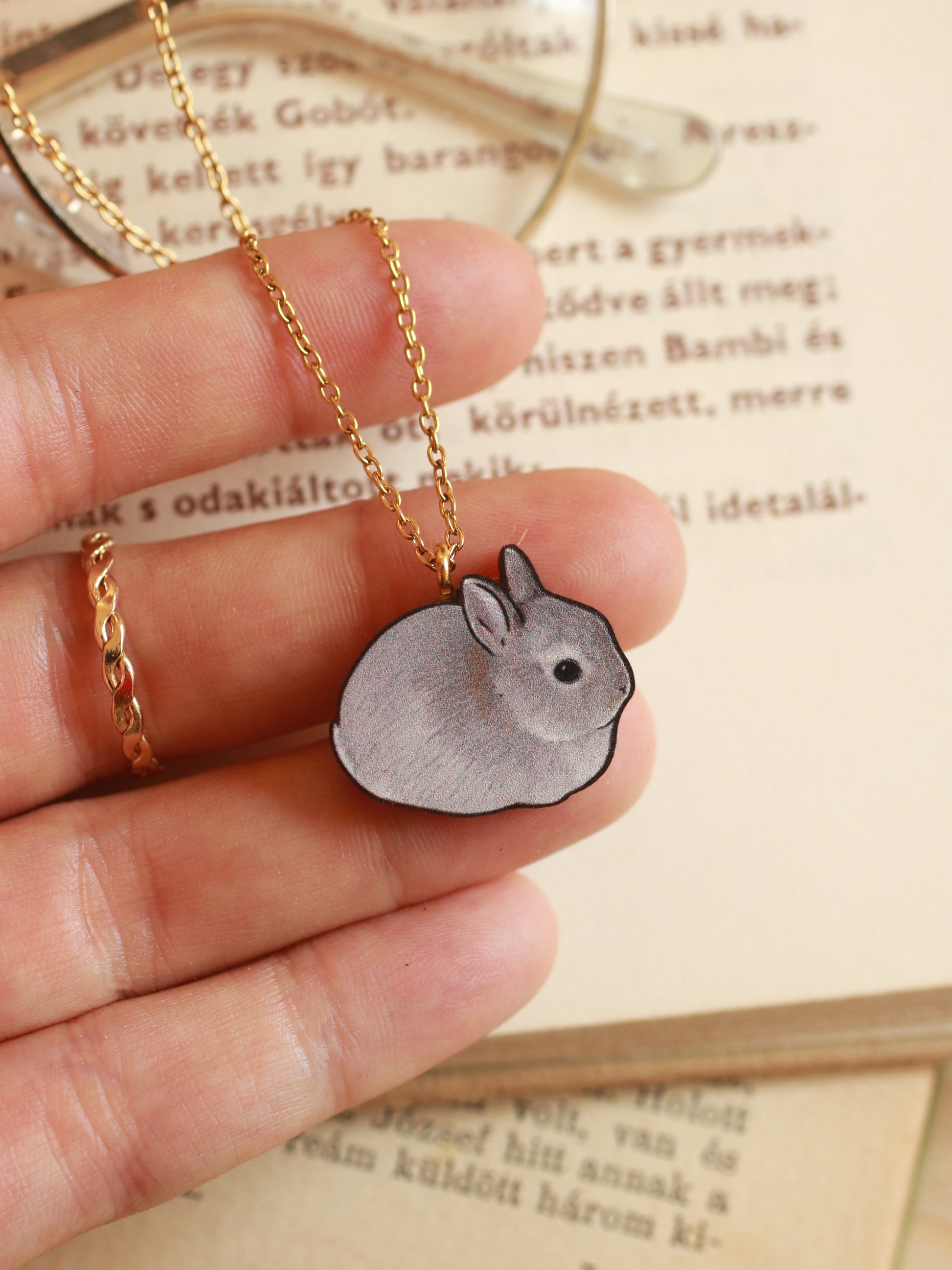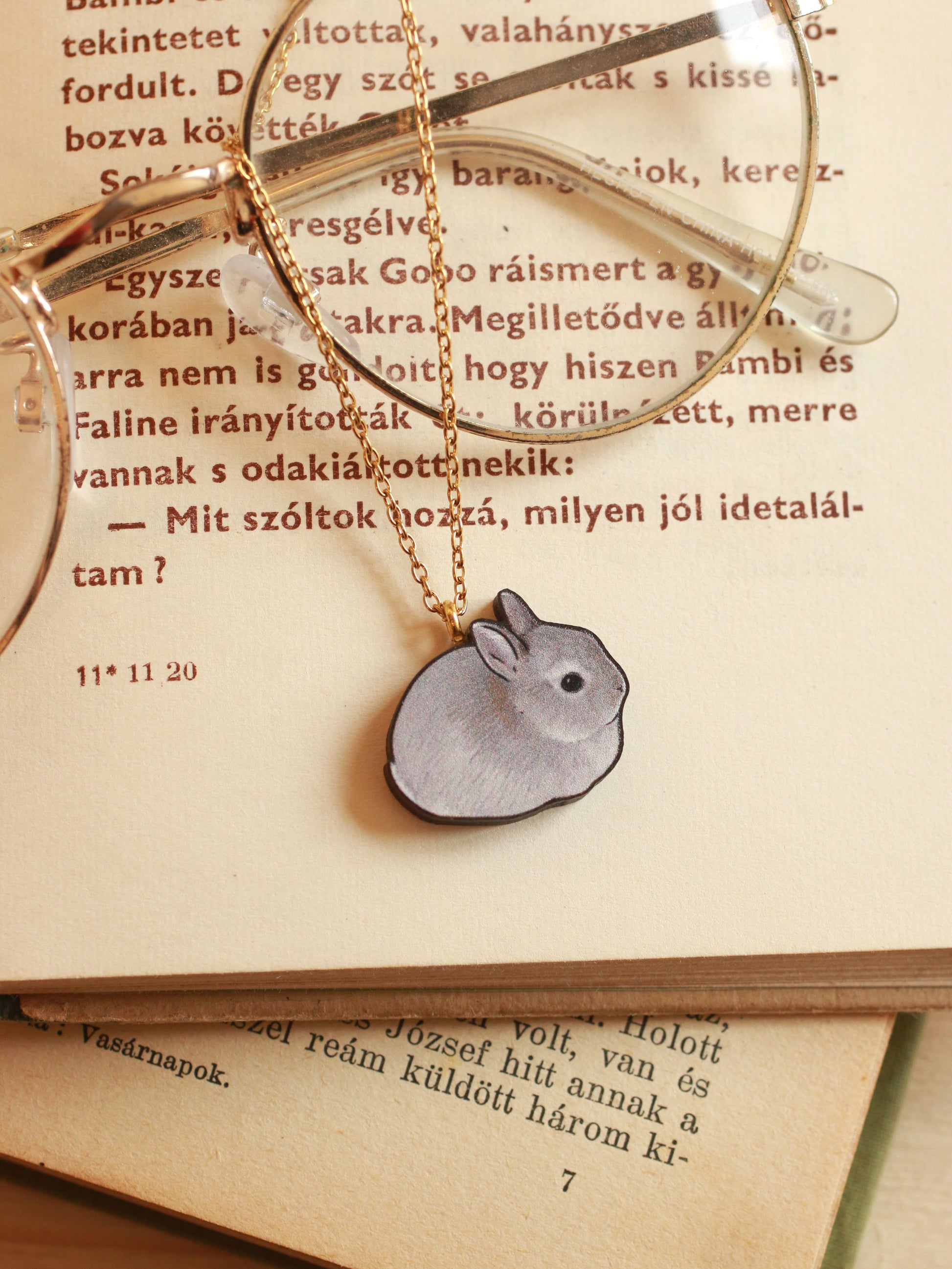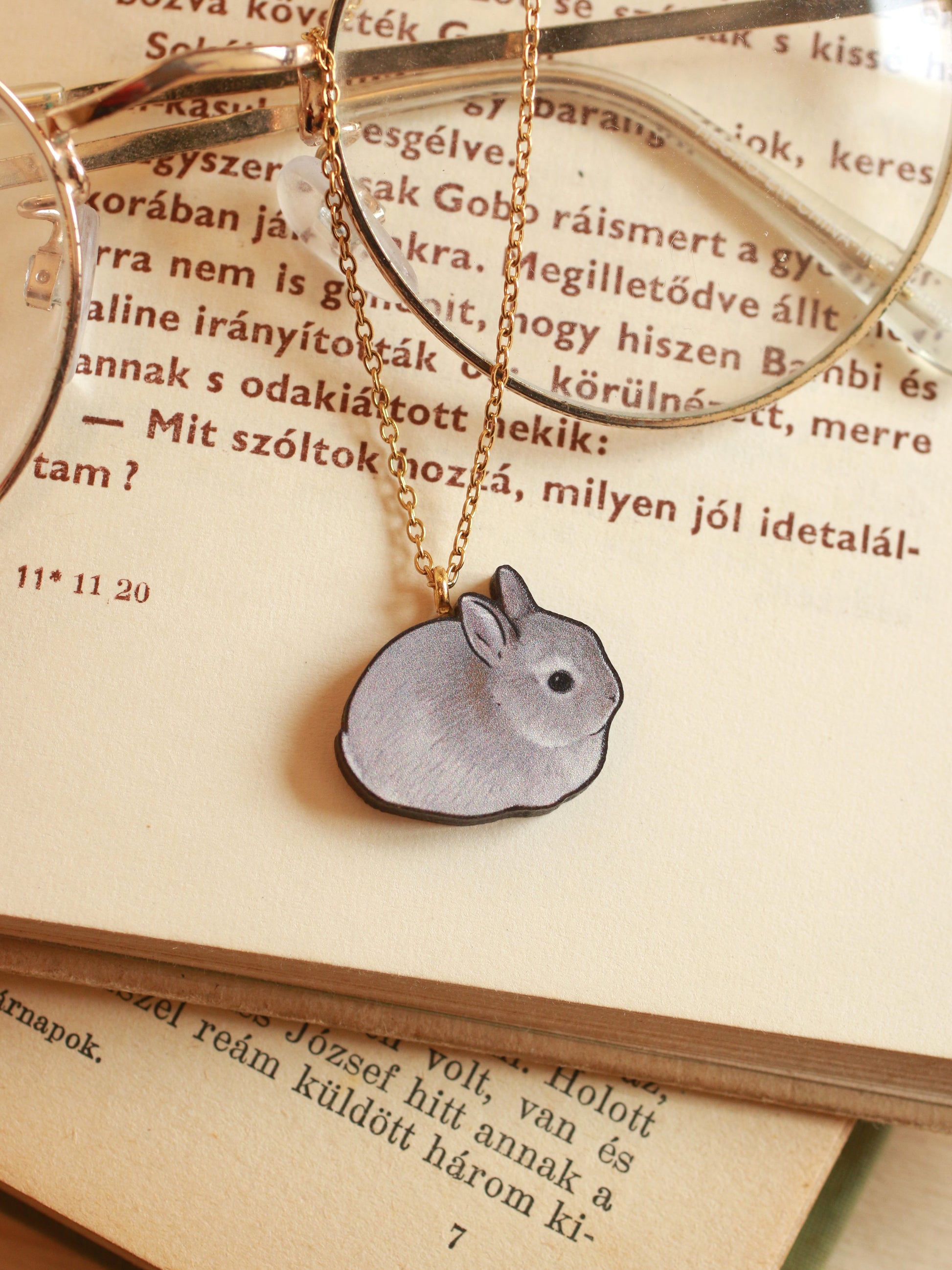 Gray Rabbit necklace - gray bunny pendant