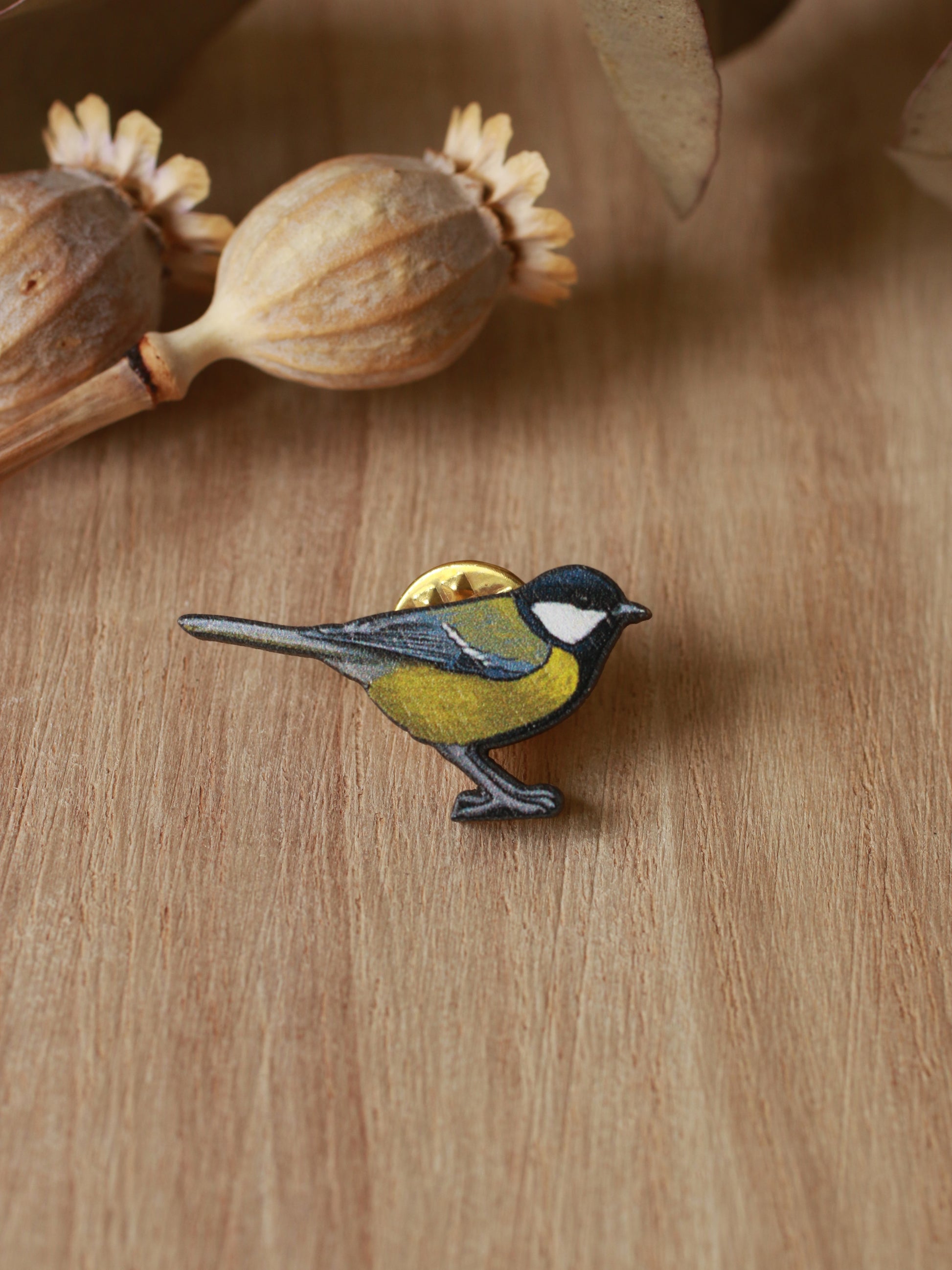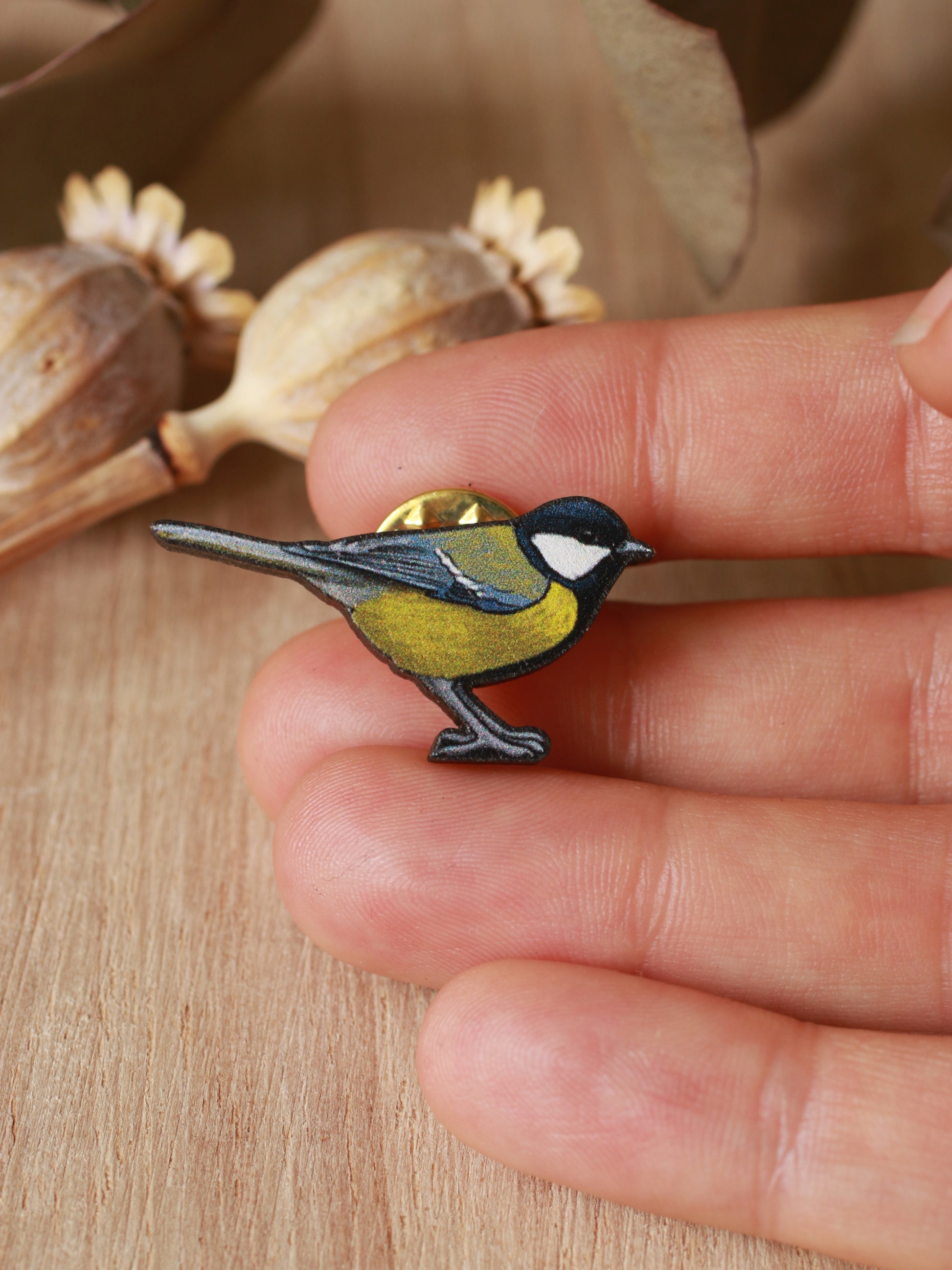Wooden Great tit pin