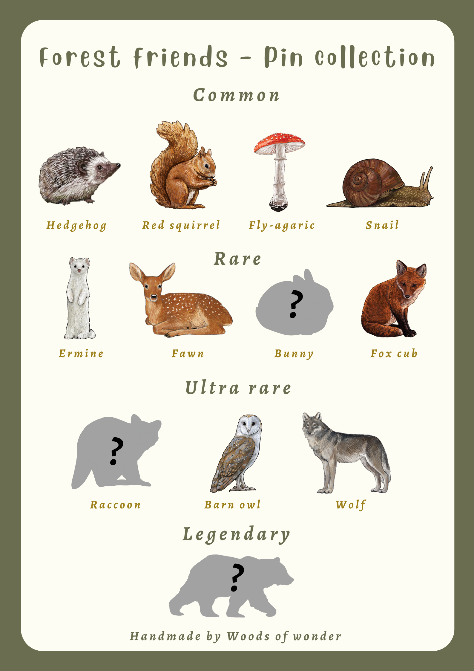Start or add to your collection – these pins are perfect for trading with friends or gifting to fellow nature enthusiasts. Share the joy of discovering your favourite woodland creature and let the mystery unfold