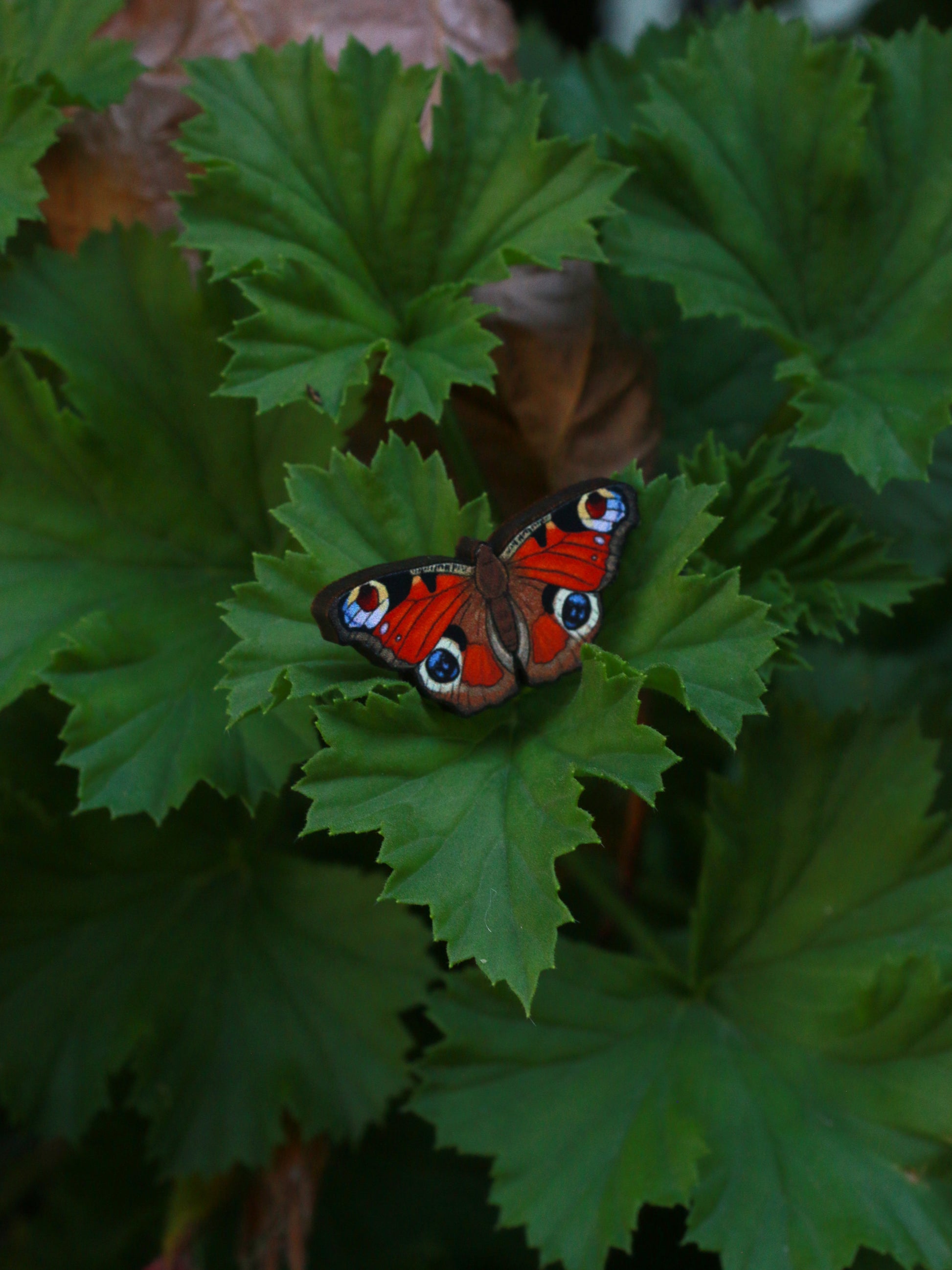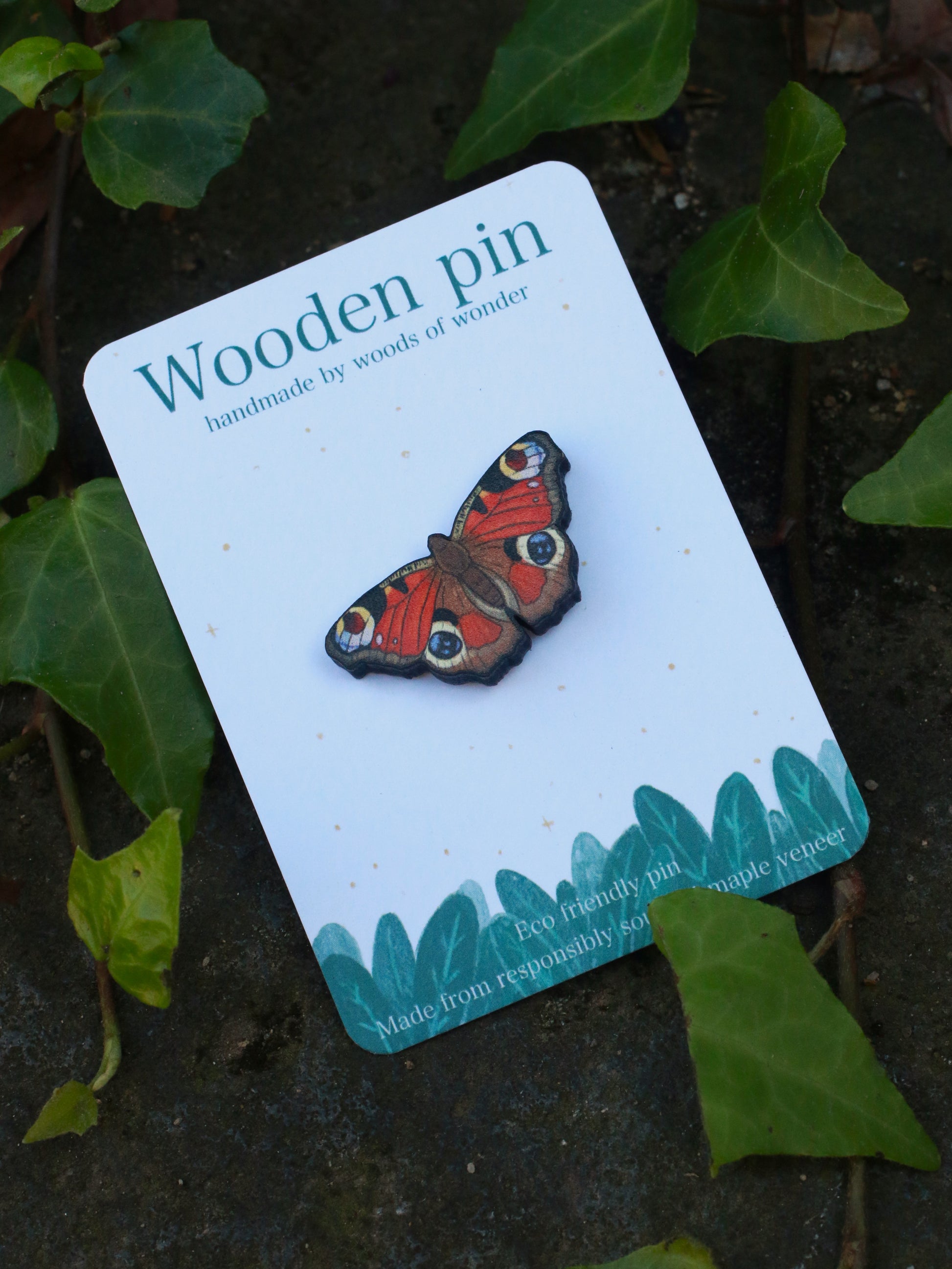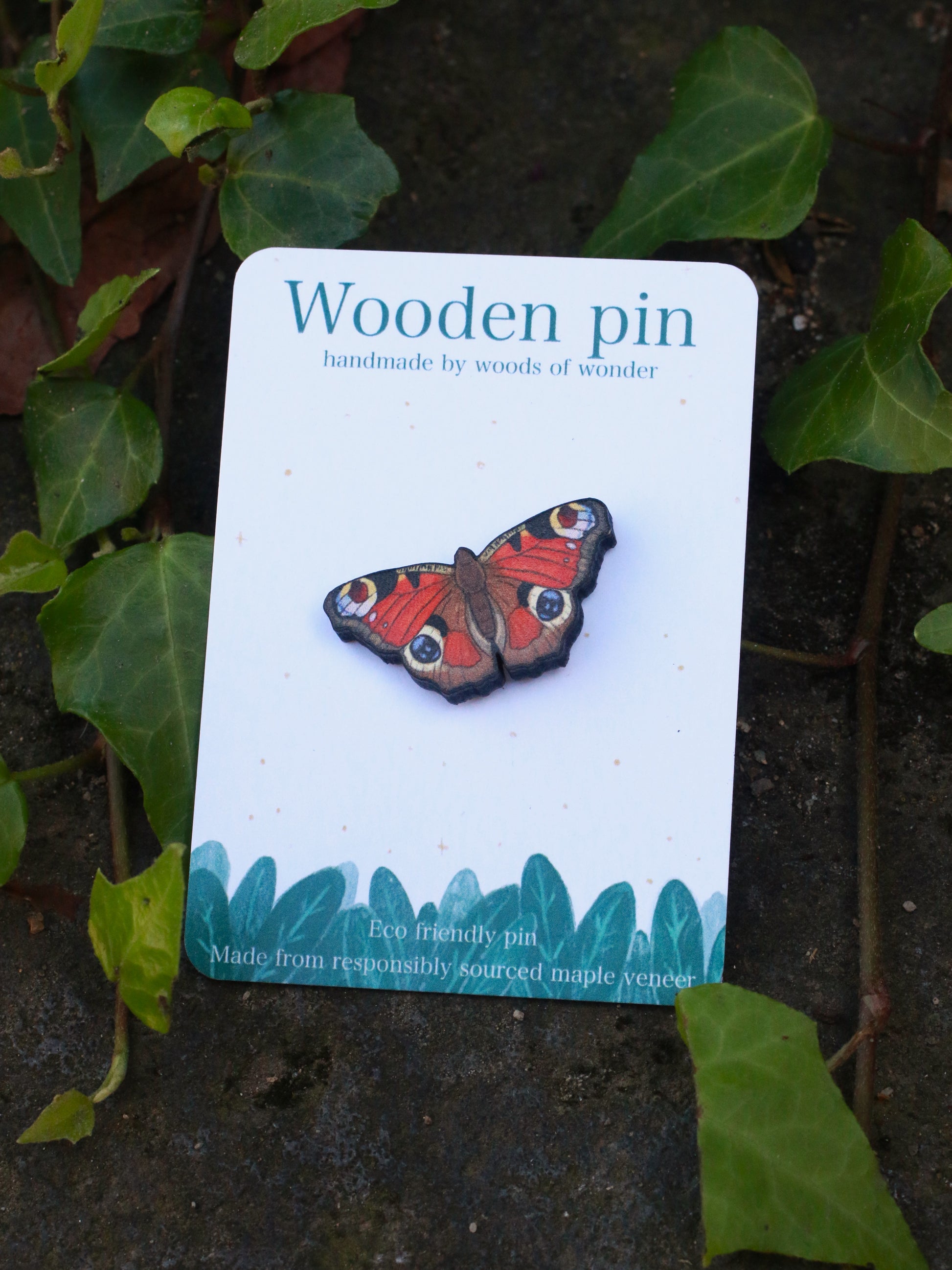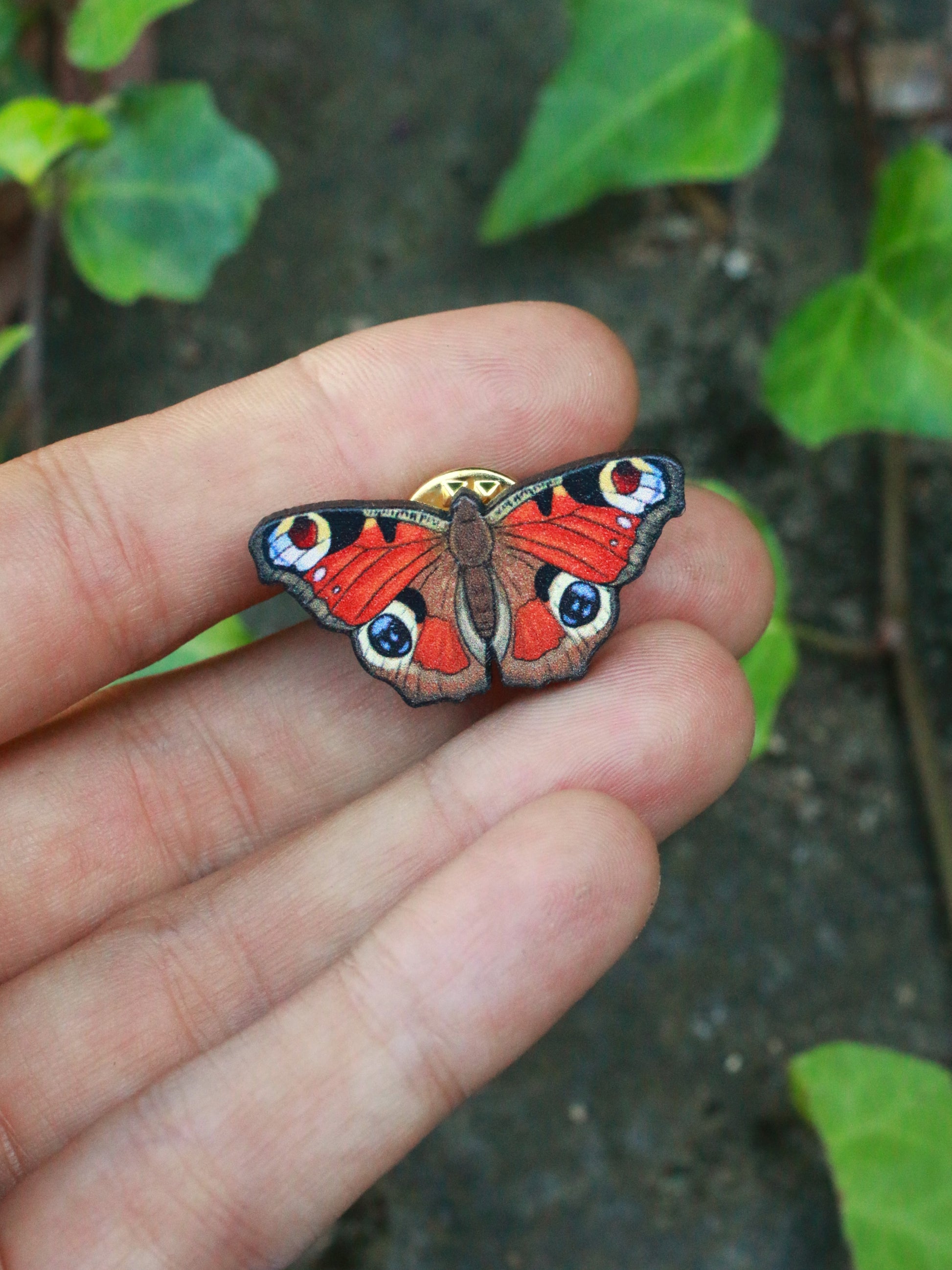 ↟ Wooden Butterfly pin - Peacock butterfly pin ↟