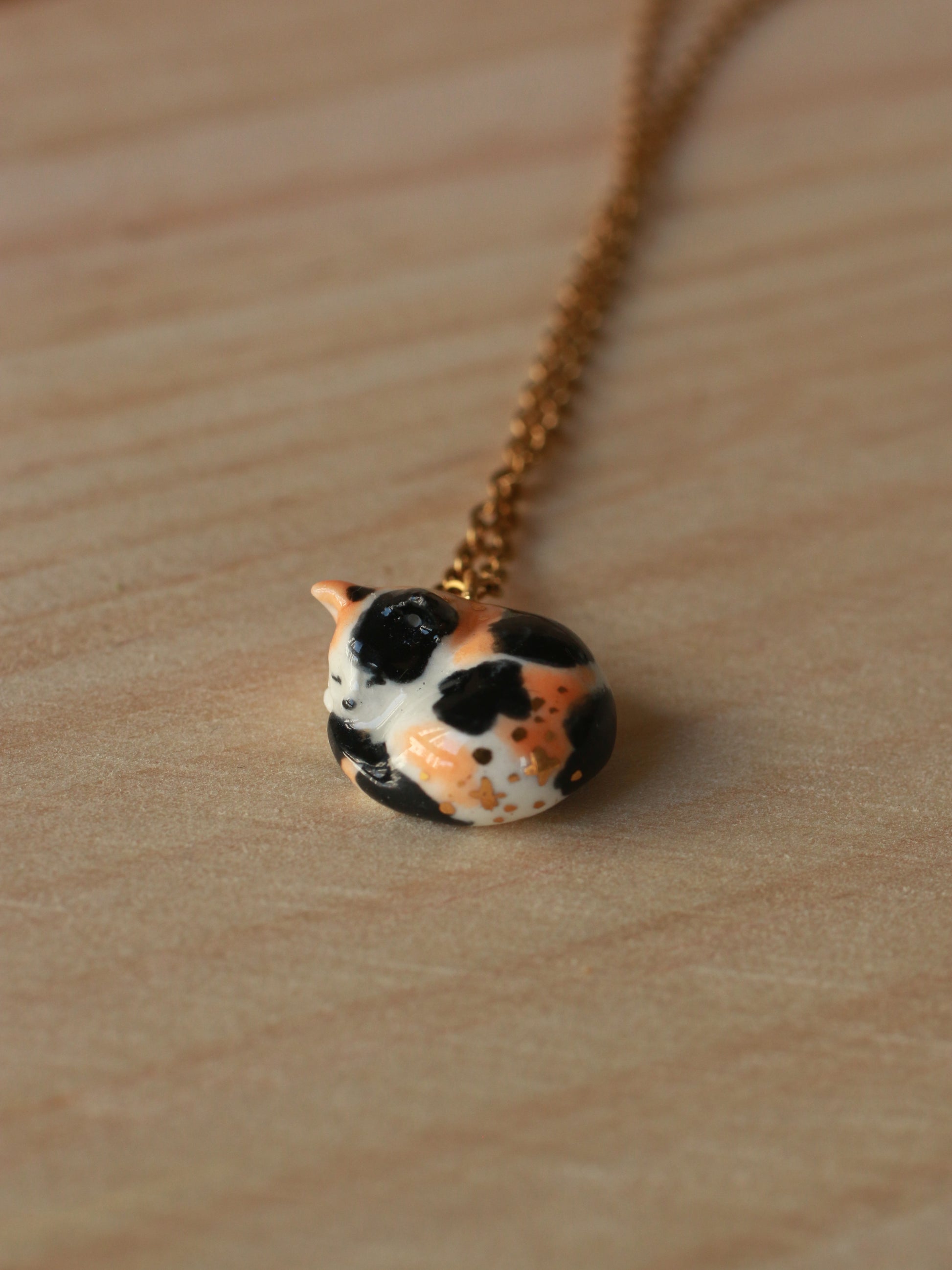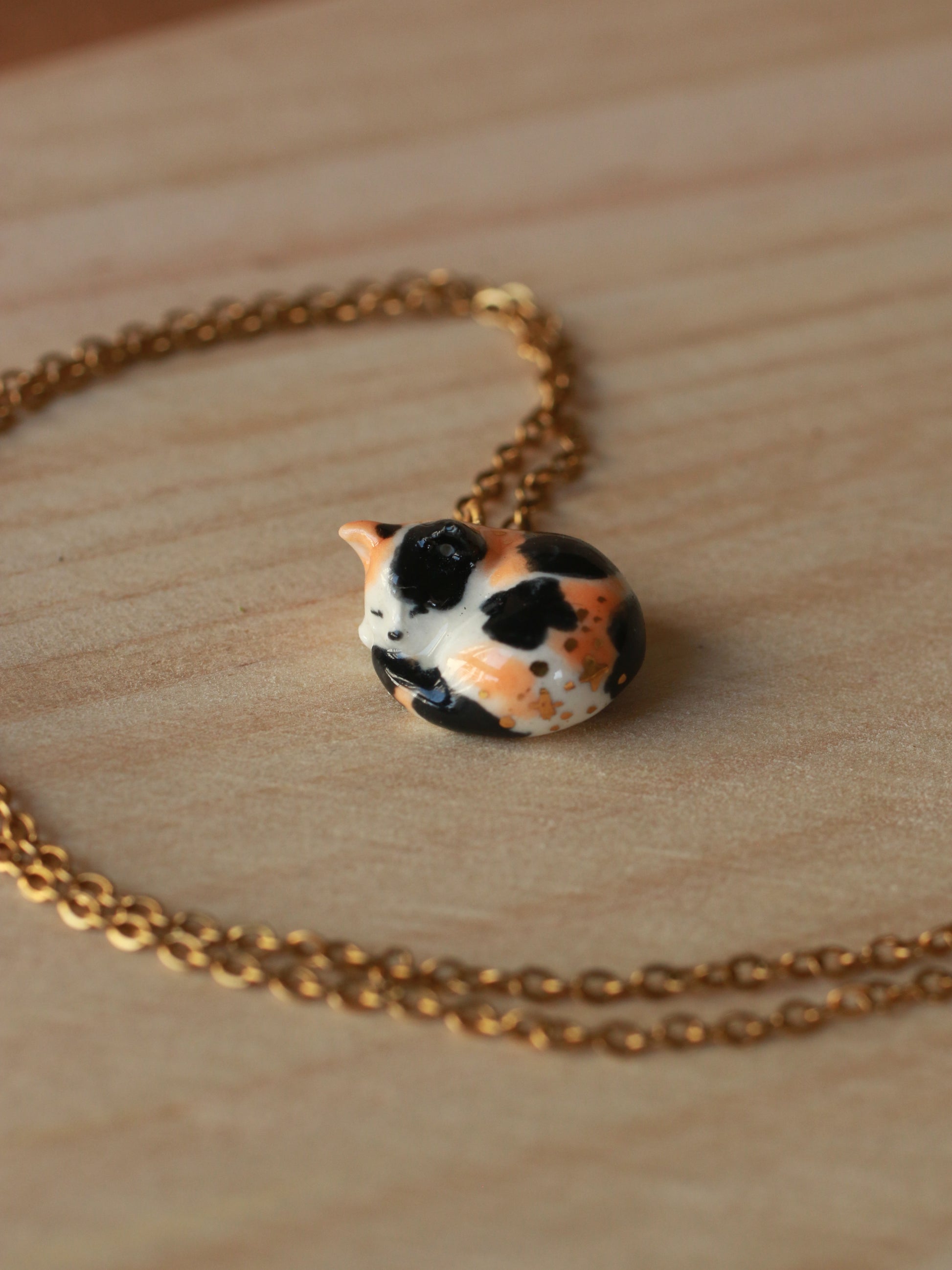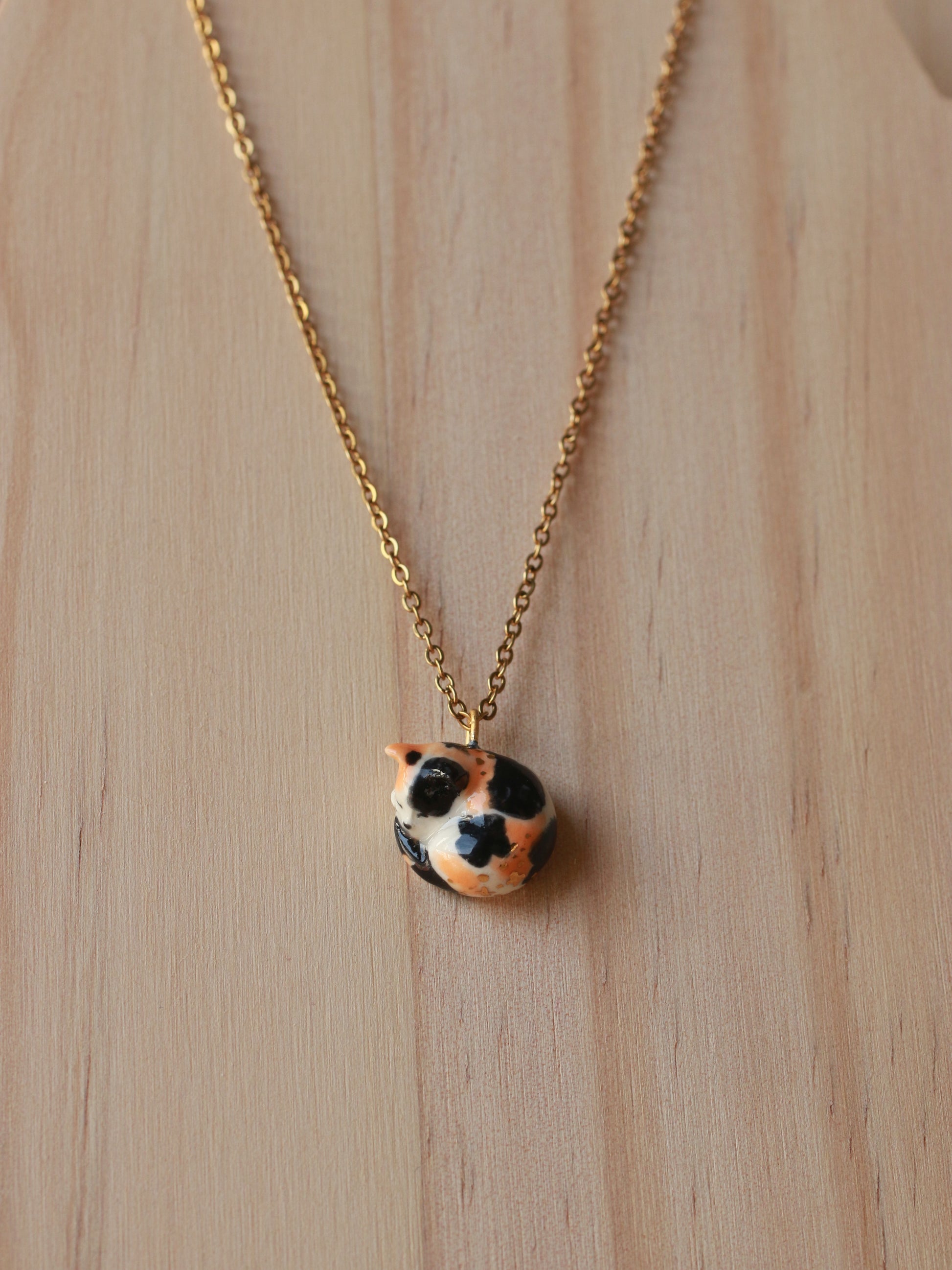 Sleeping calico cat necklace