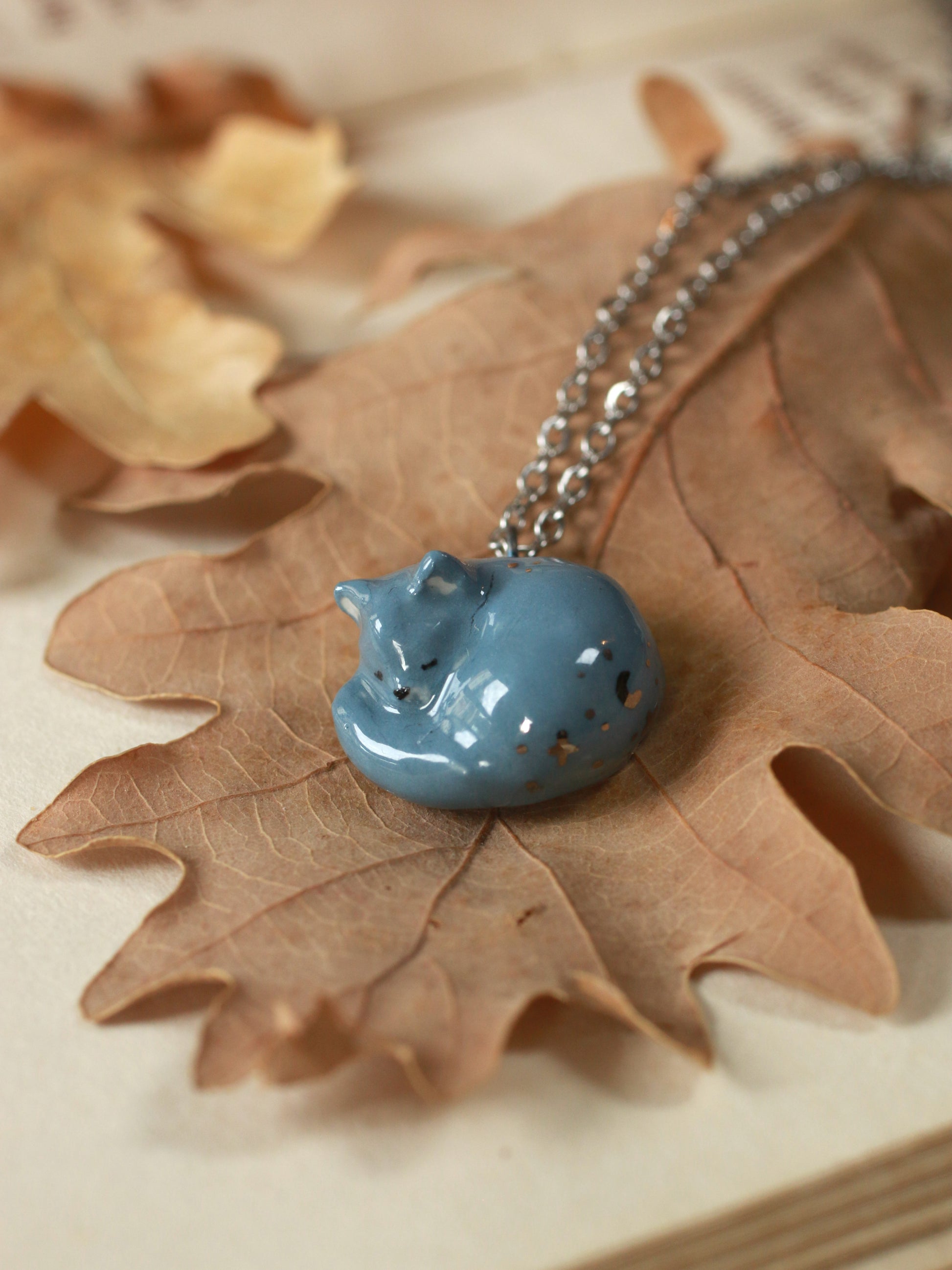 Sleeping grey cat necklace