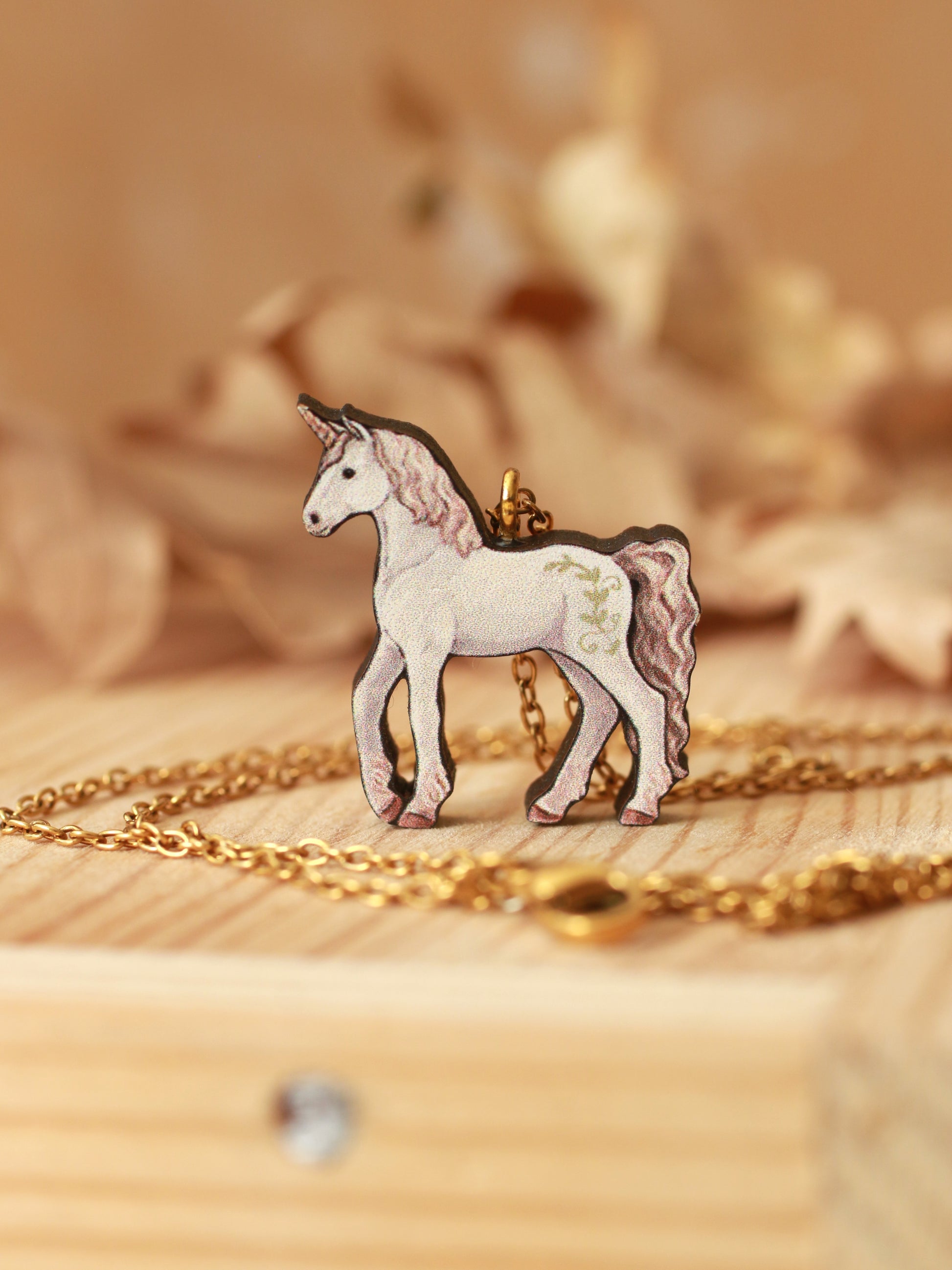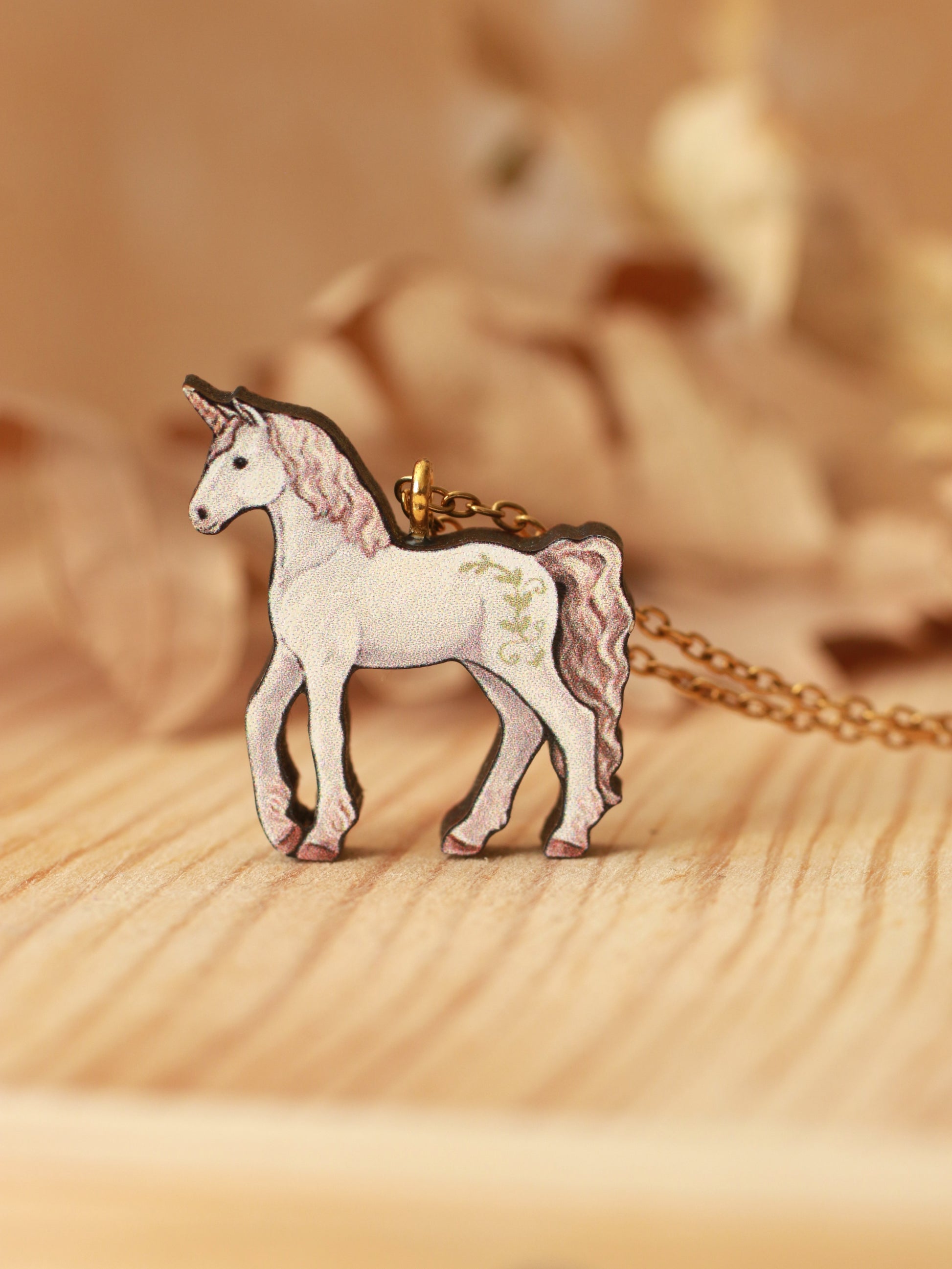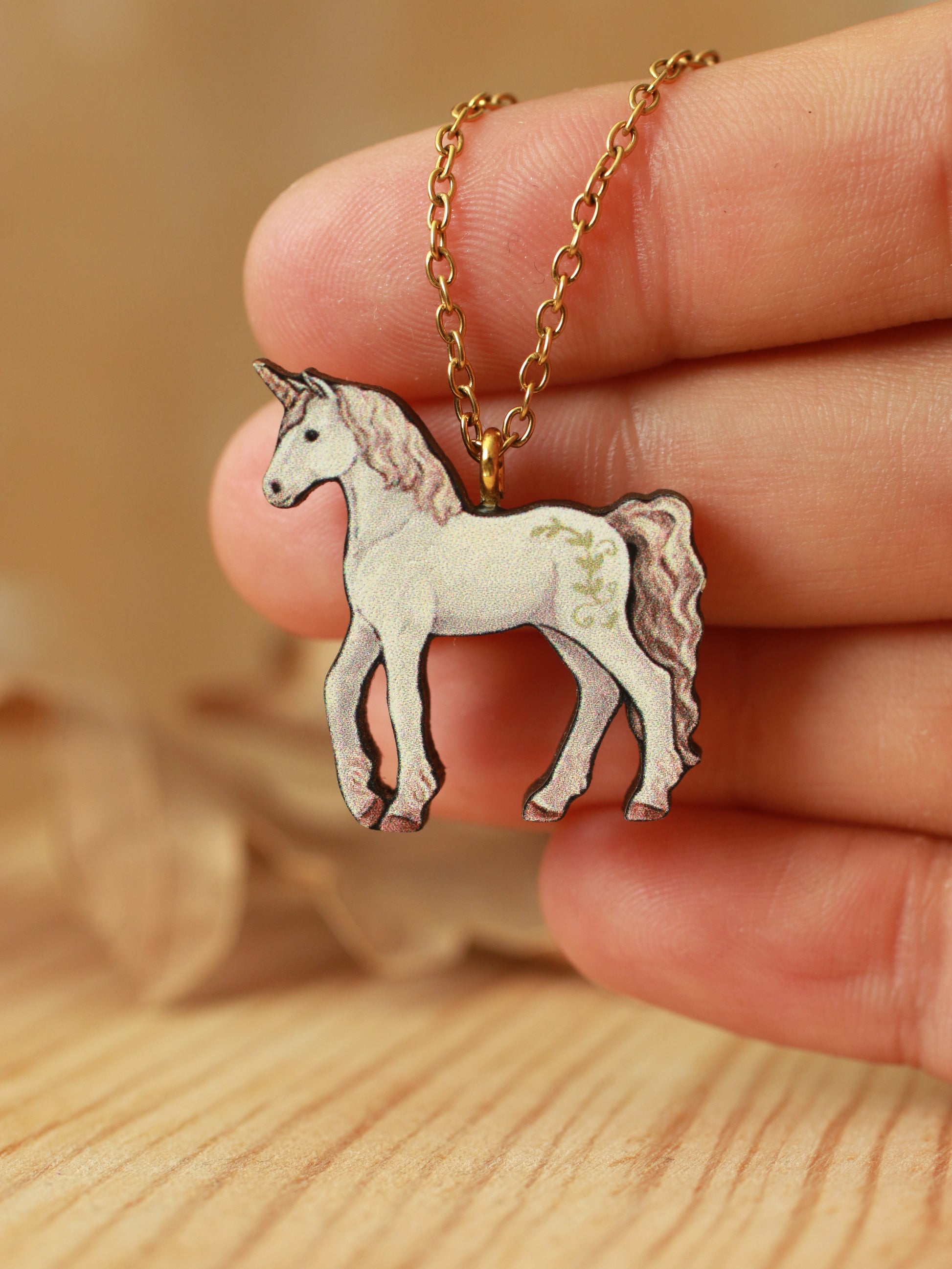 Handmade wooden Unicorn necklace
