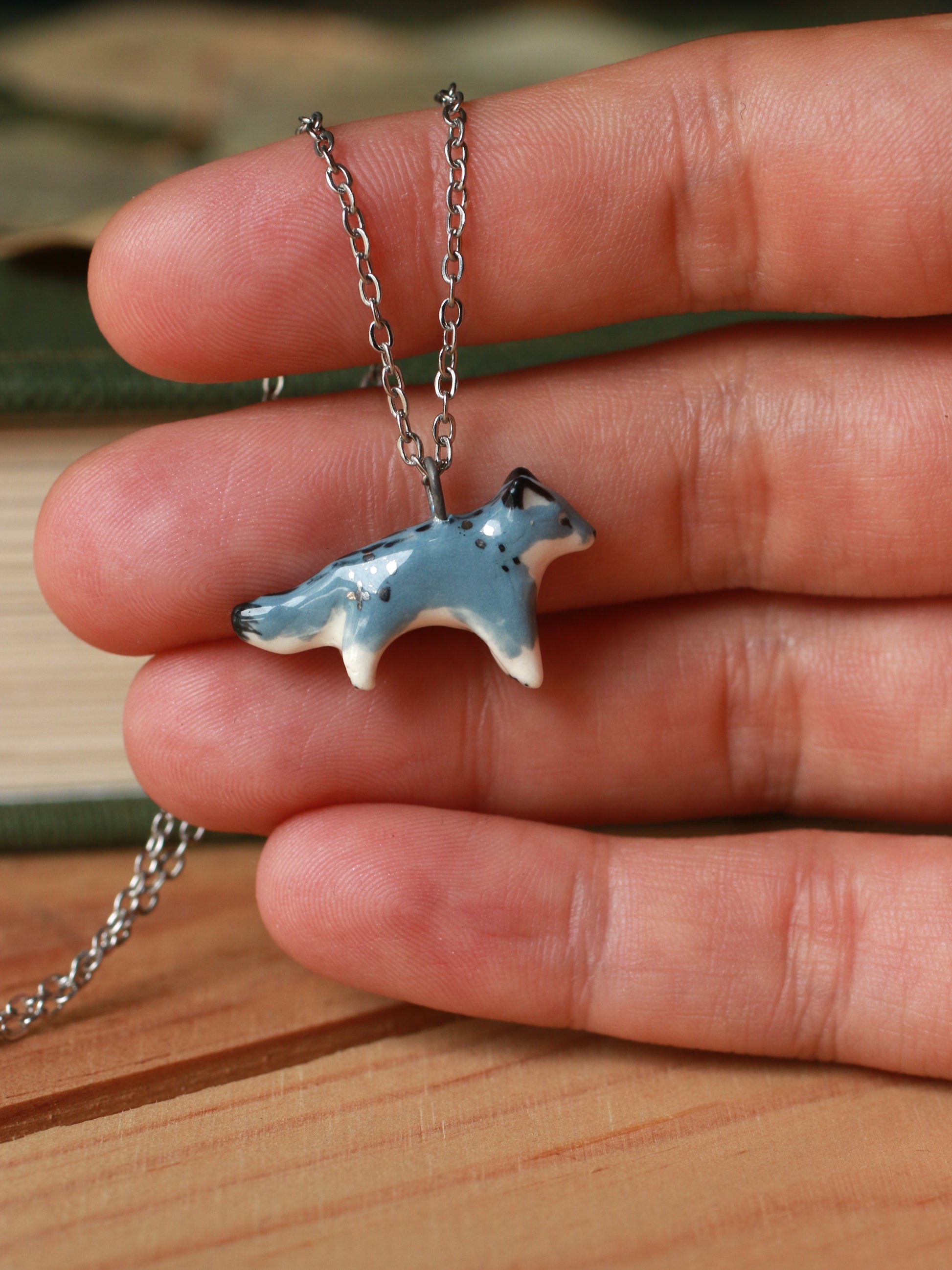 Ceramic starry wolf necklace