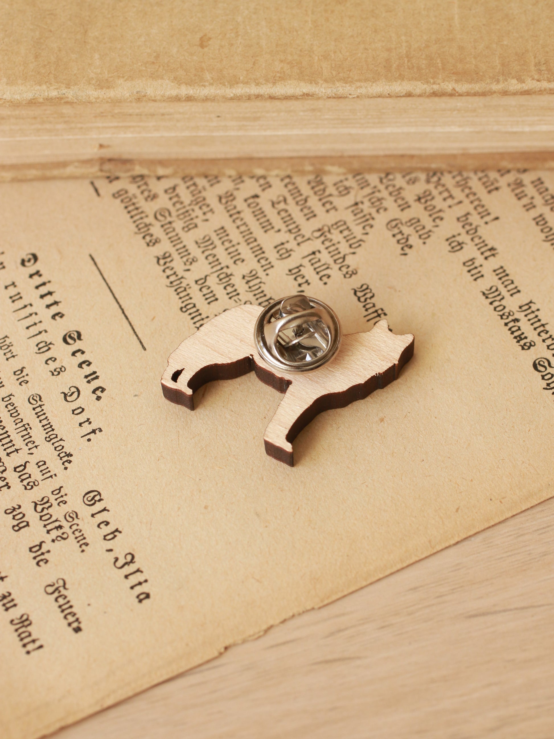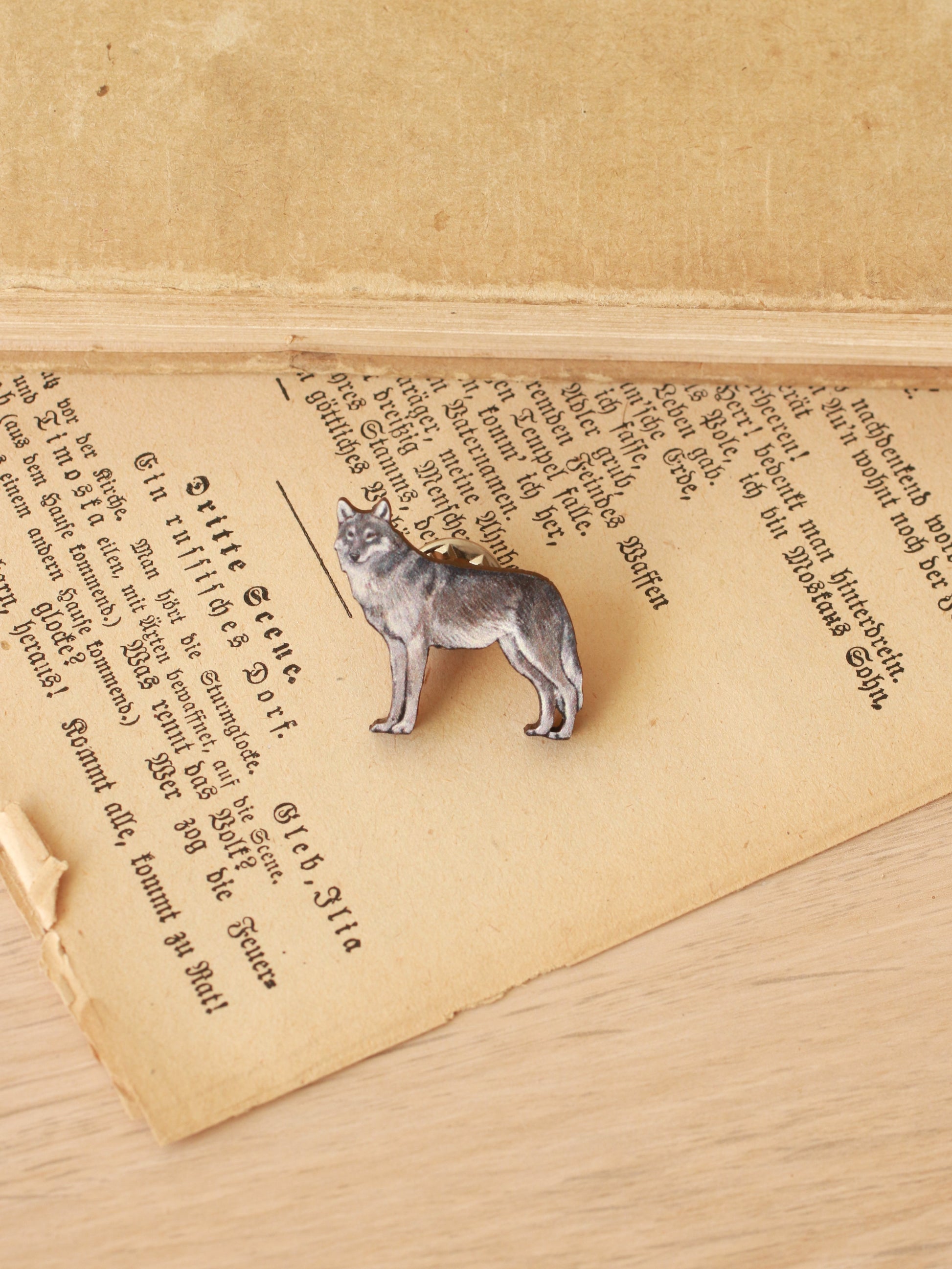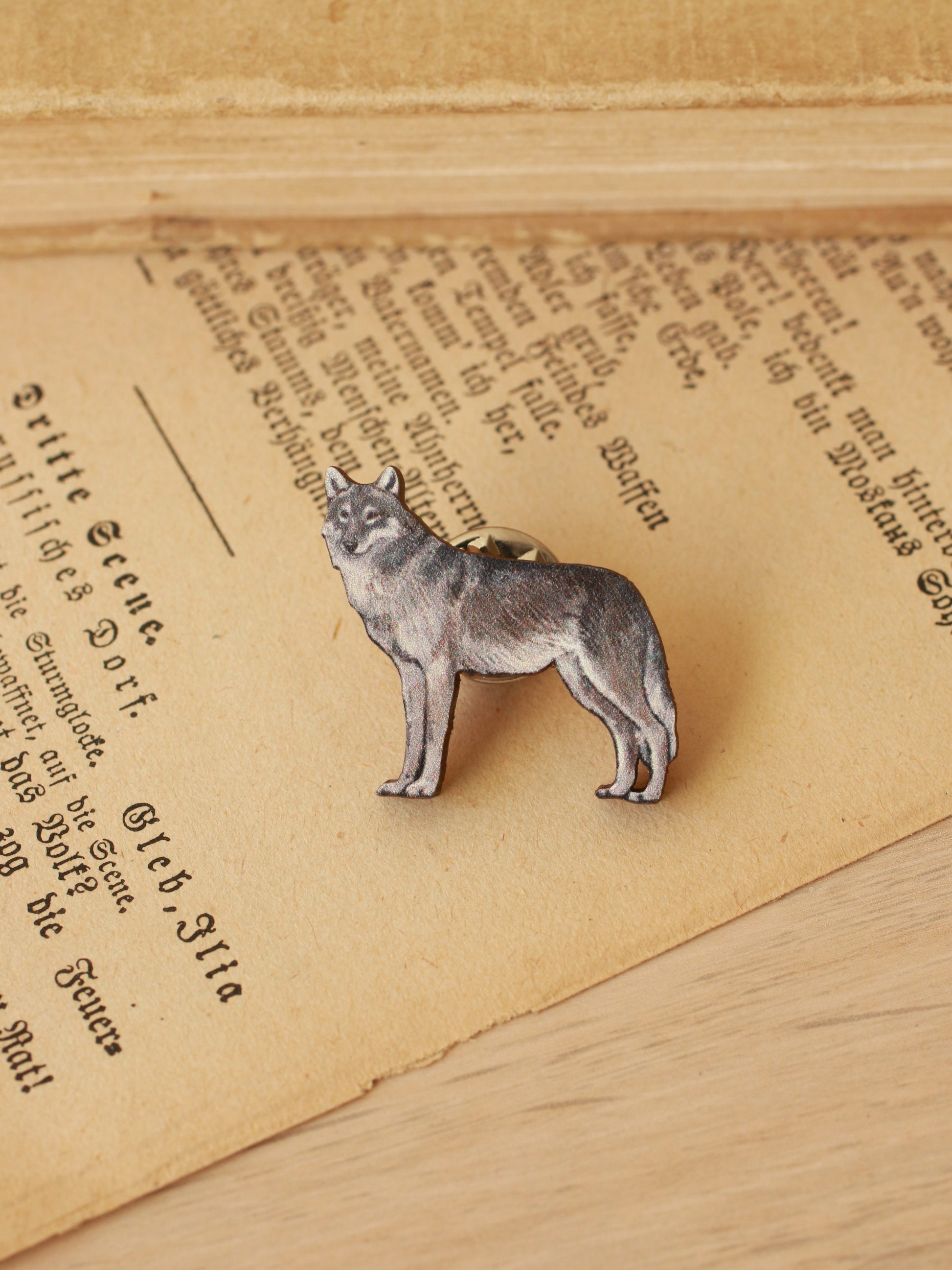 ↟ Wooden wolf pin ↟