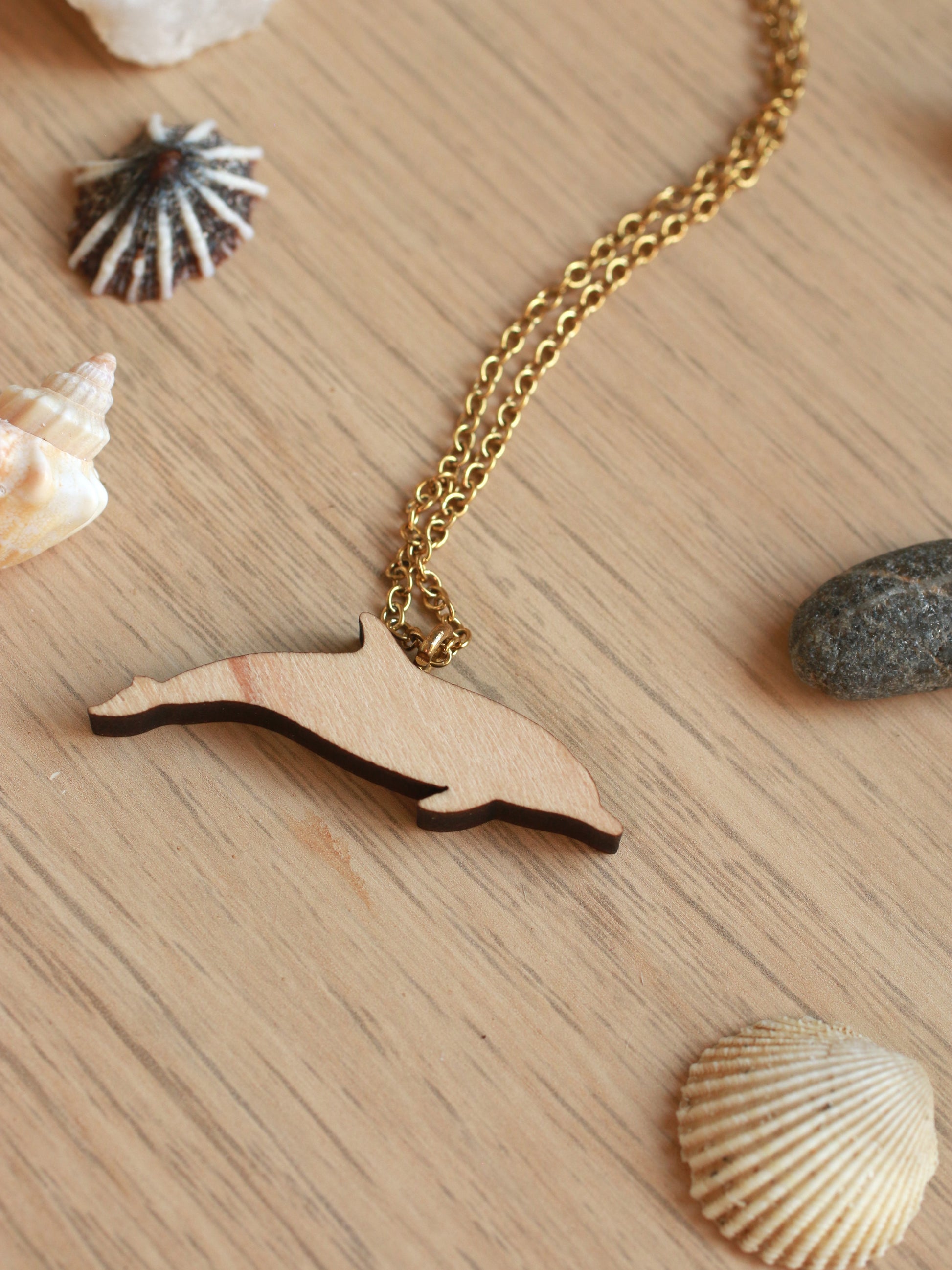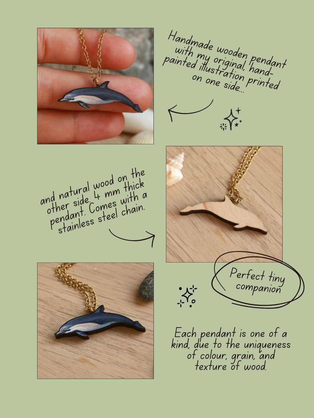 with my original painting printed on one side of the pendant and natural wood on the other.